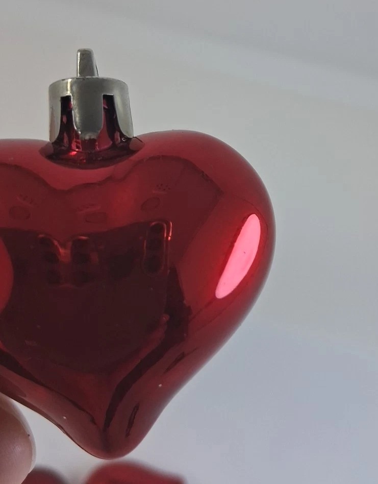 как выглядит Mini Red Heart Ornament Lot Of 6 Valentines Plastic Shatter Resist Small 1.5" фото