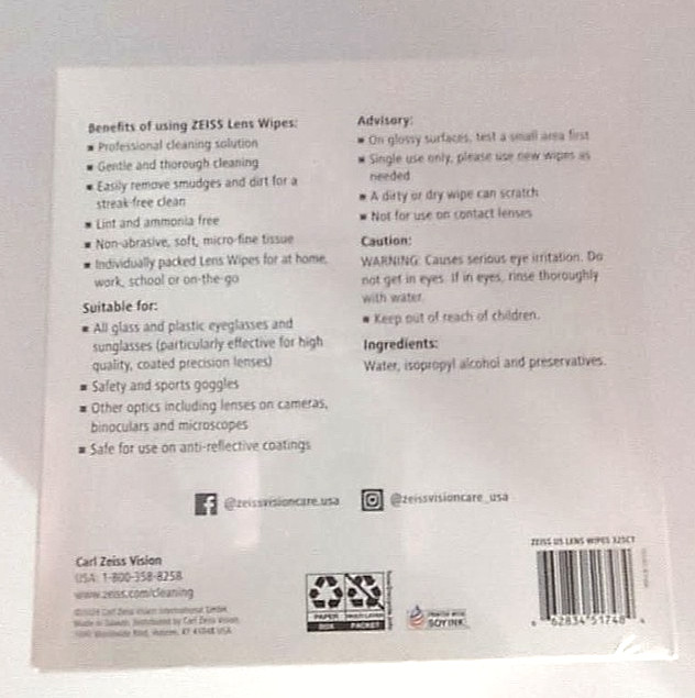 Pack of 325 Count ZEISS Gentle and Thorough Cleaning Eyeglass Lens Cleaner Wipes