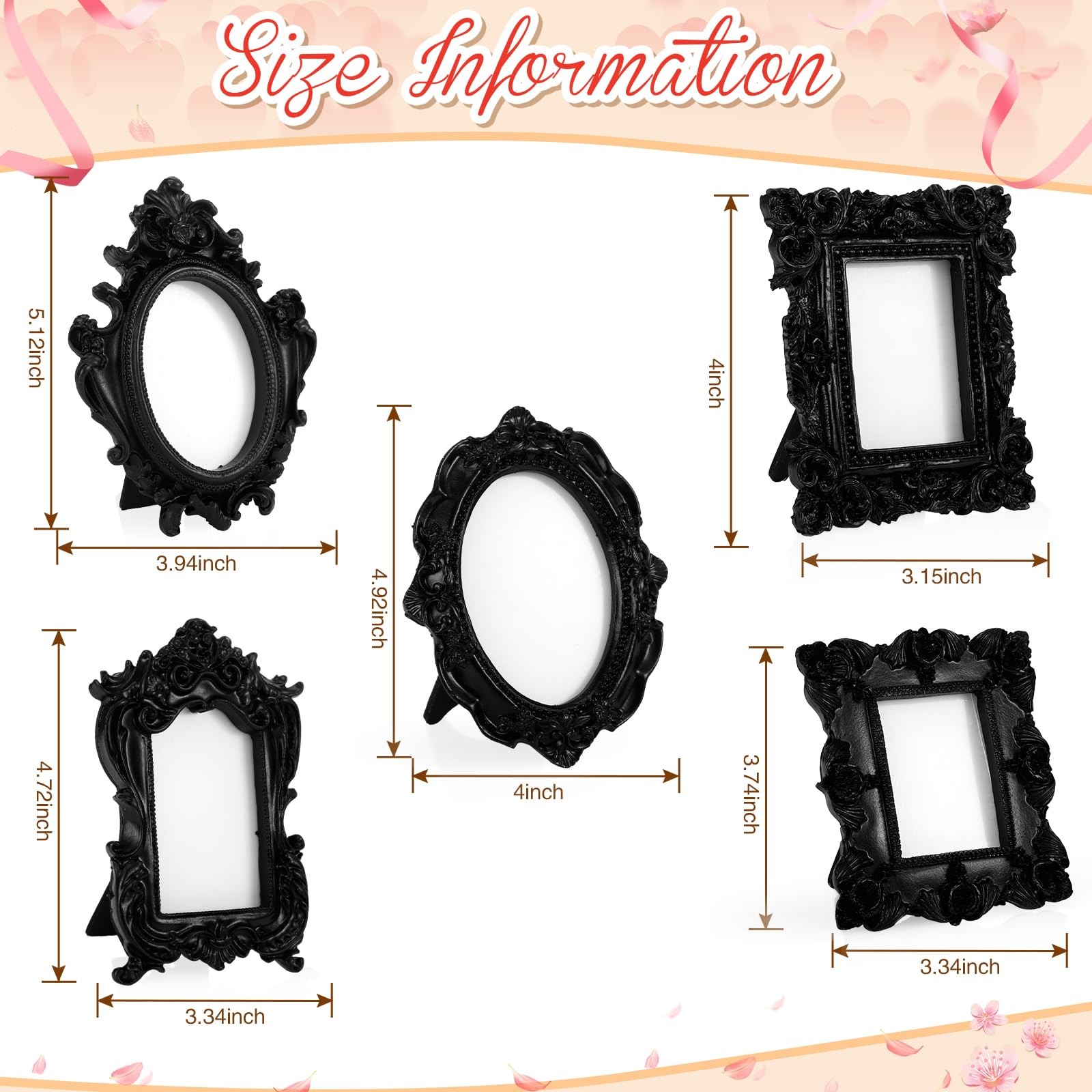 5 Pcs Mini Picture Vintage Frames Tiny Antique Photo Baroque Ornate Resin Ova...