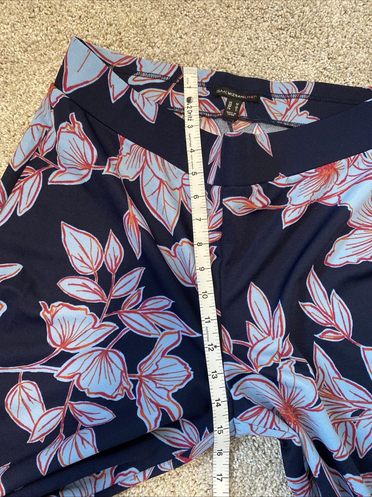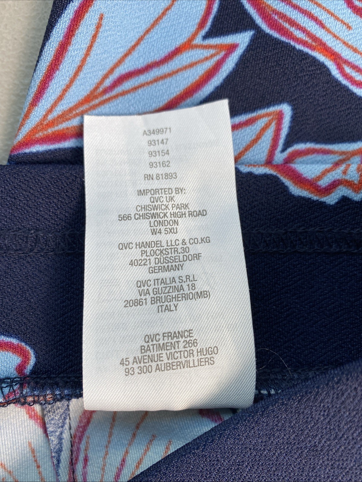 Isaac Mizrahi Live Wmn M Floral Print Pull On Comfort Knit Wide Leg Pants Navy
