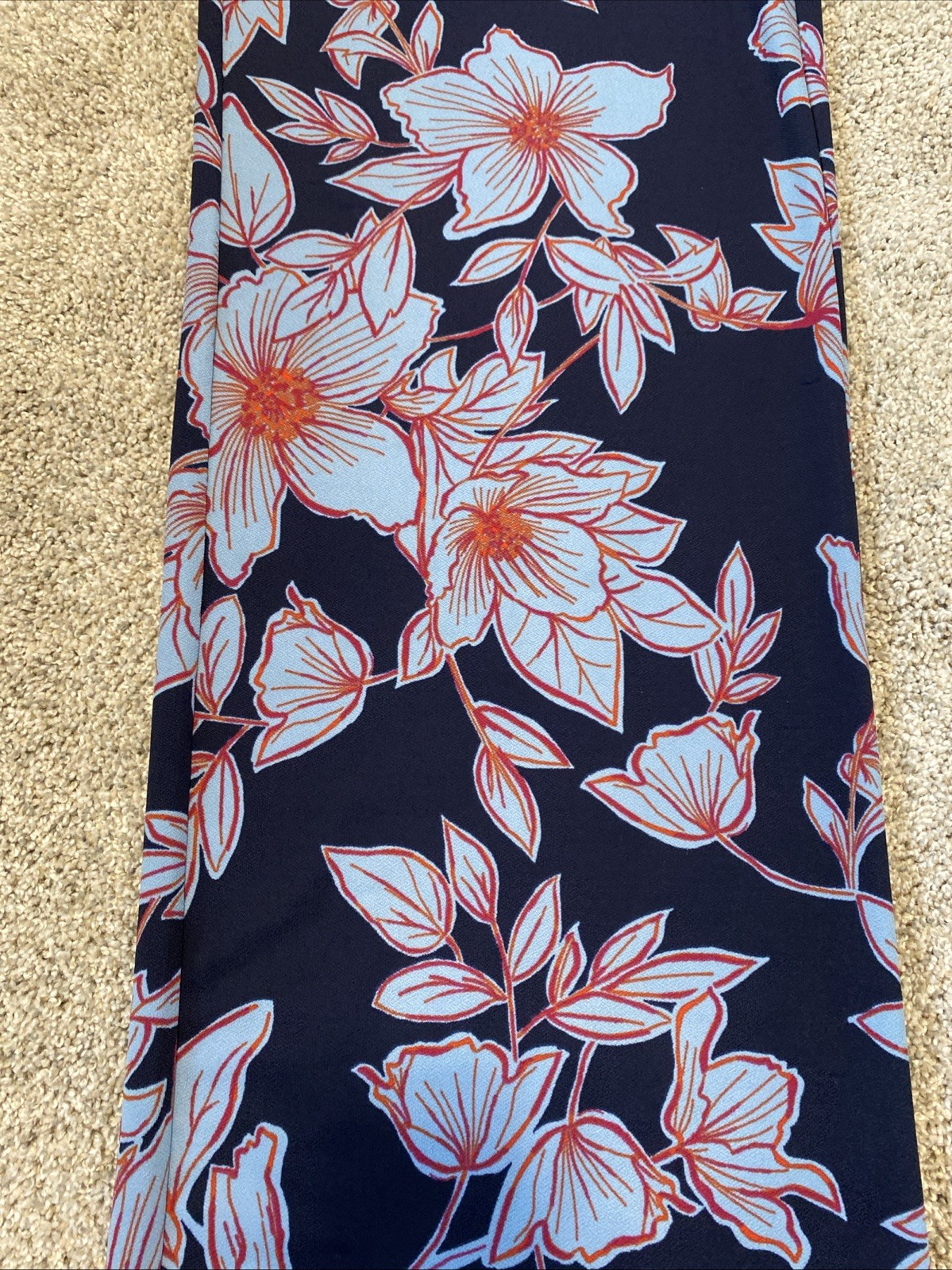 как выглядит Isaac Mizrahi Live Wmn M Floral Print Pull On Comfort Knit Wide Leg Pants Navy фото