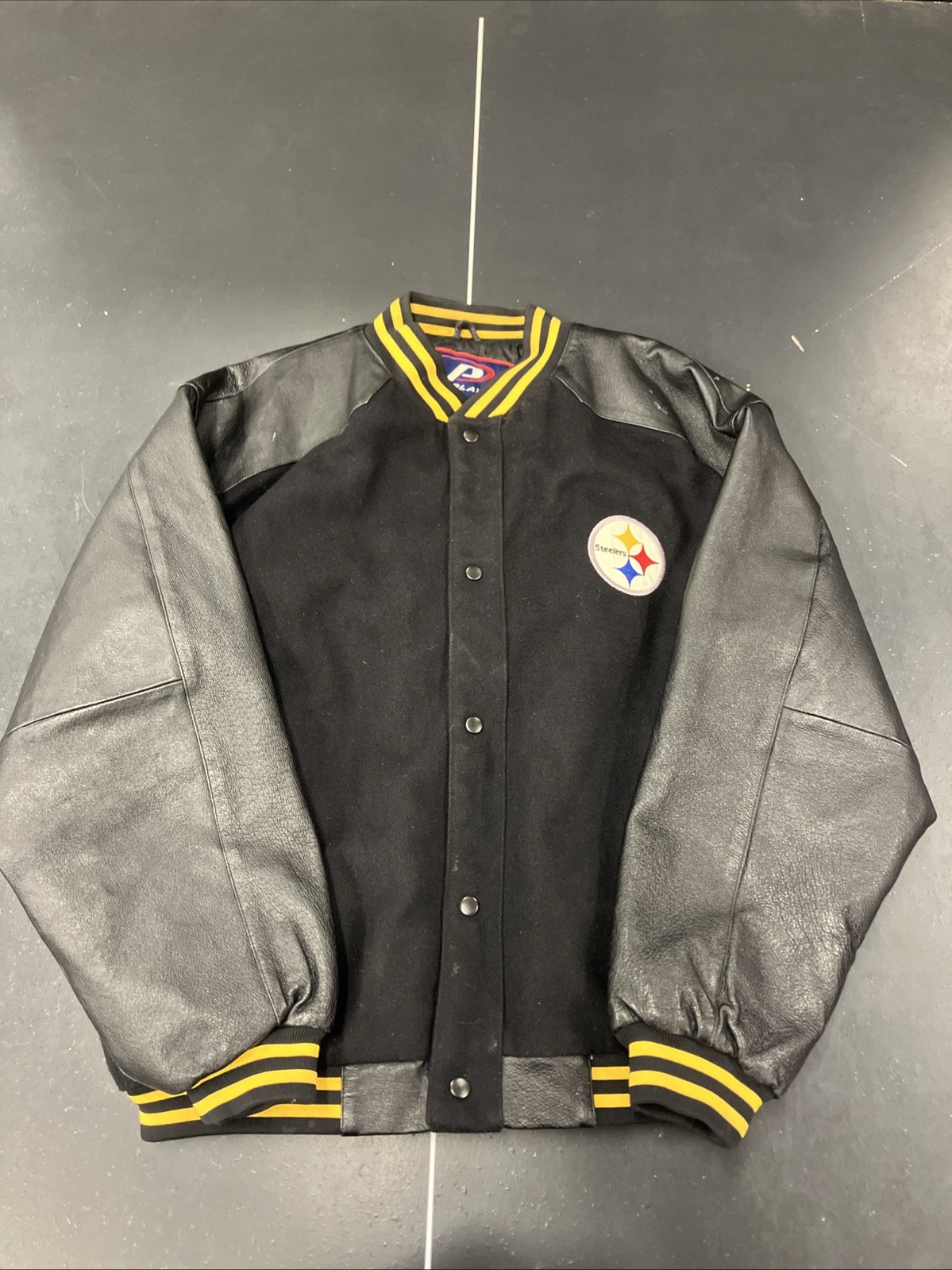 Vintage Pittsburgh Steelers Jacket Mens XL Black Gray Wool Varsity NFL Football