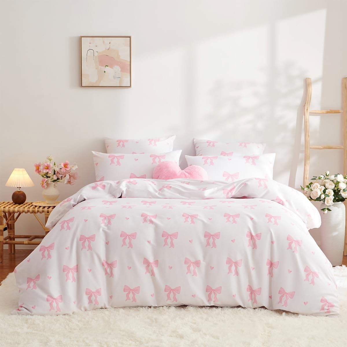 как выглядит Bow Bedding Duvet Cover King 3Pcs Pink Heart Bedding Set for Girls Kids,Cute ... фото