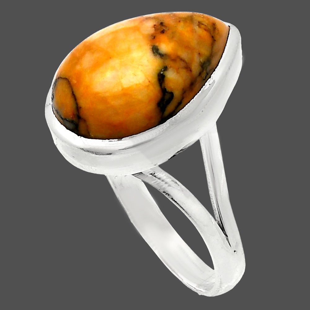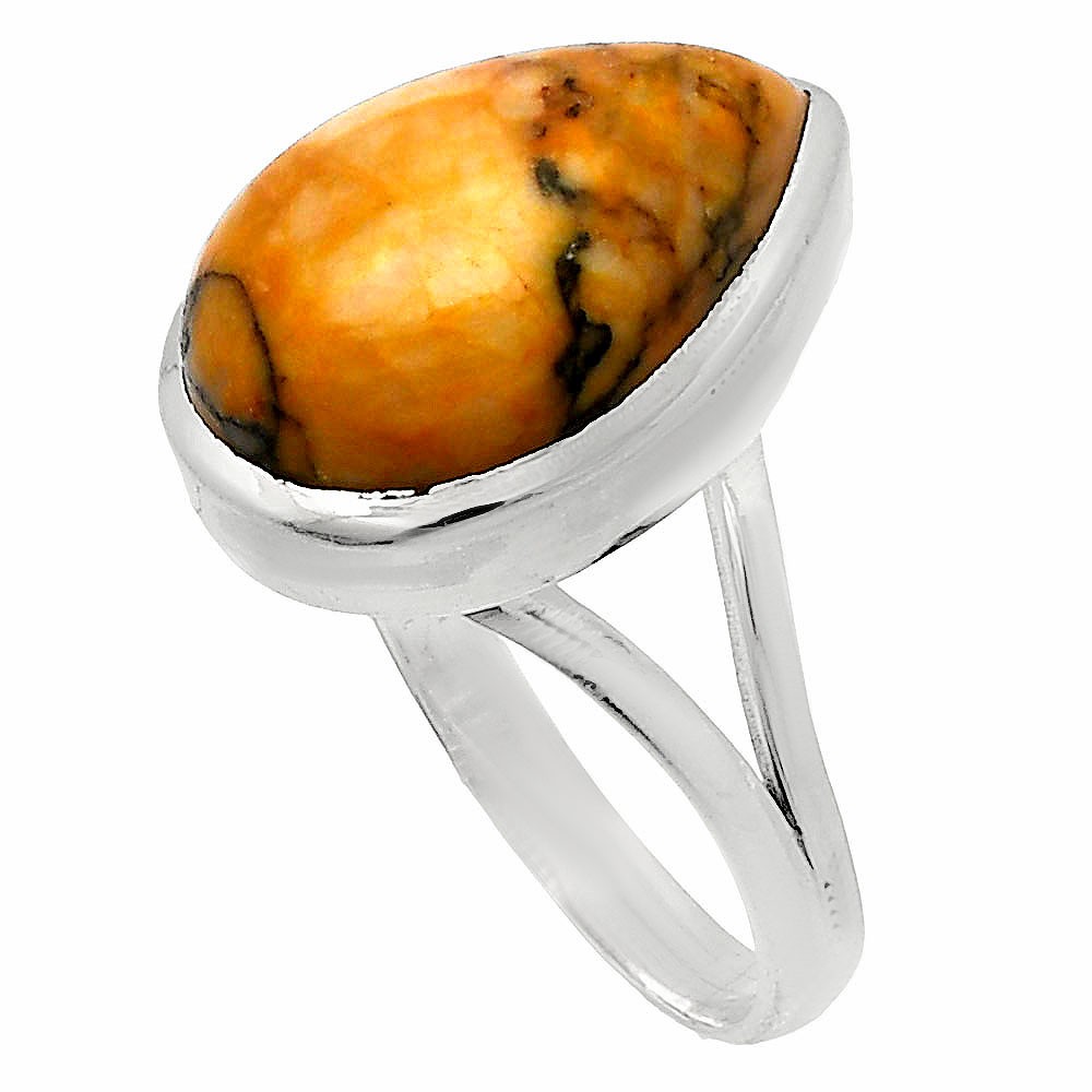 Natural Honey Dendritic Opal 925 Sterling Silver Ring s.9.5 Jewelry R-1005