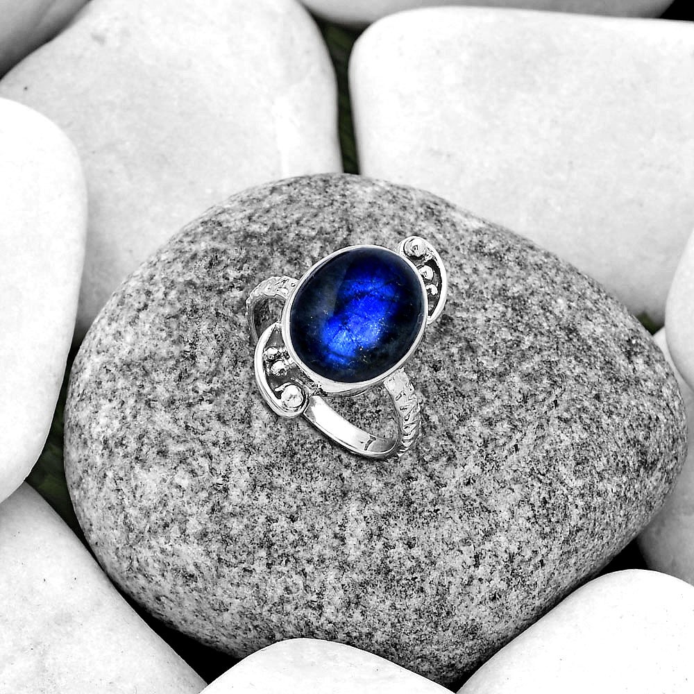 Blue Fire Labradorite - Madagascar 925 Sterling Silver Ring s.7 Jewelry R-1160