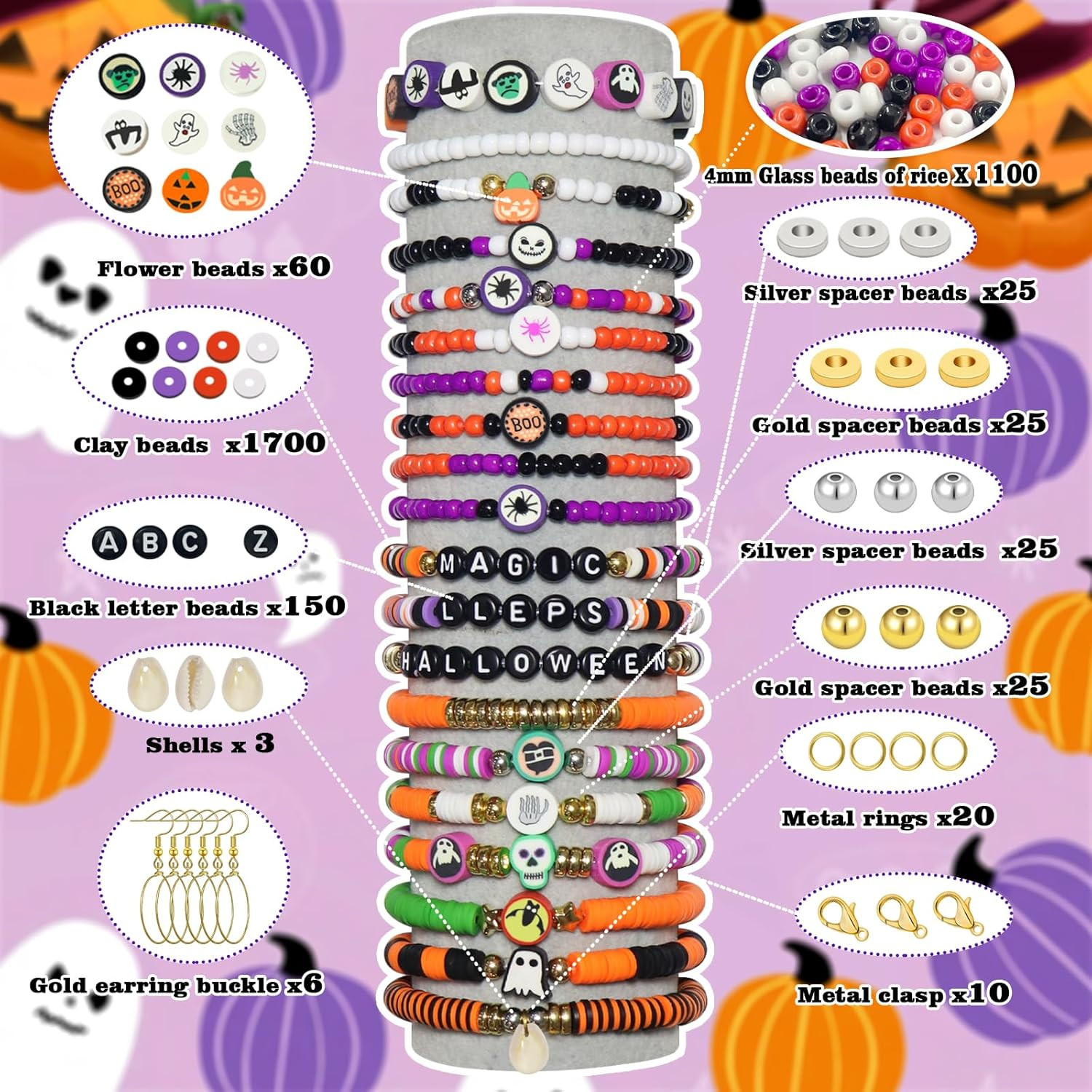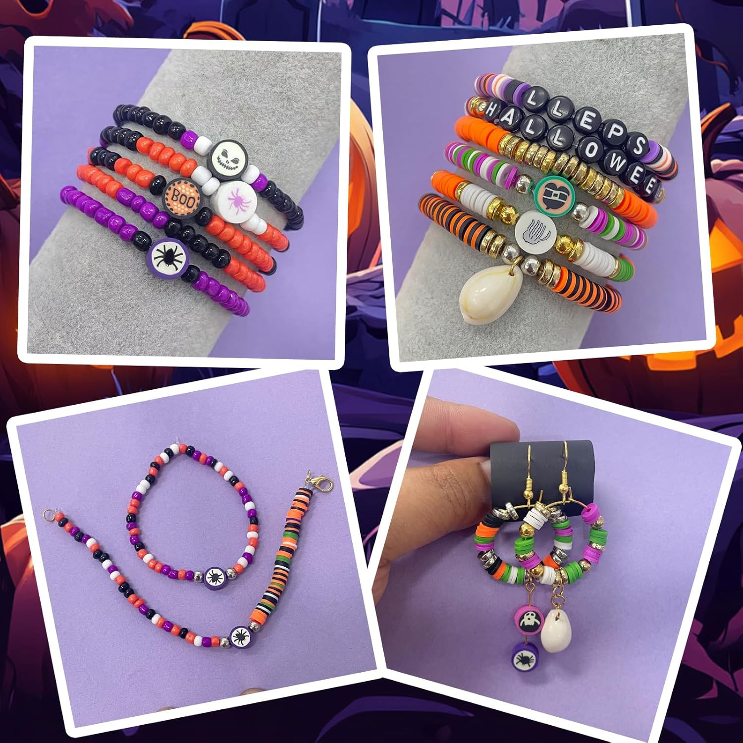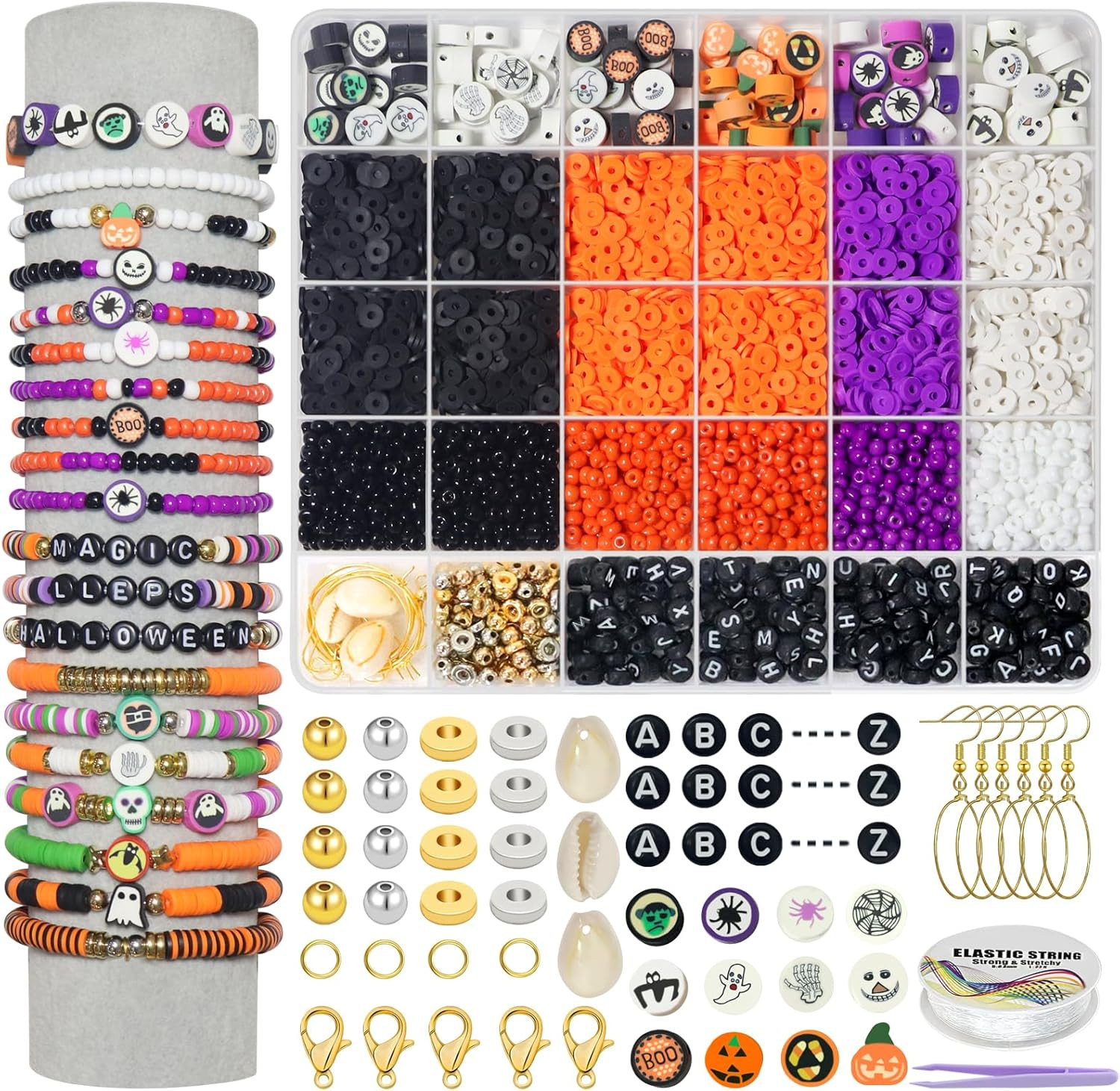 как выглядит 3300 PCS Clay Beads Bracelet Making Kit,Halloween DIY Flat Preppy Beads for Frie фото