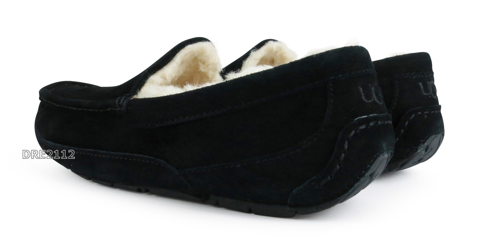 UGG Ascot Black Suede Fur Slippers Mens 10 -NIB-