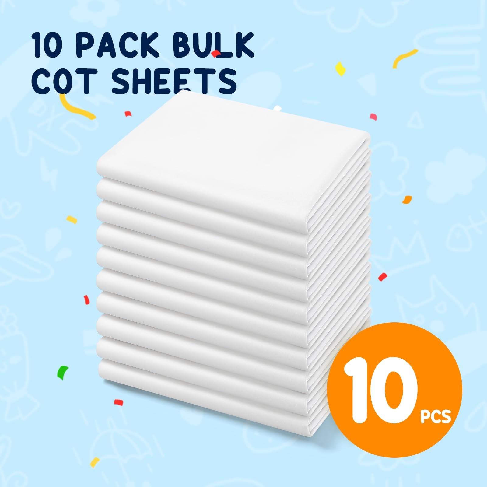 Cot Sheets for Daycare Standard Size - Fits 23 x 52 Cot, 10 Pack Bulk, Dayc...