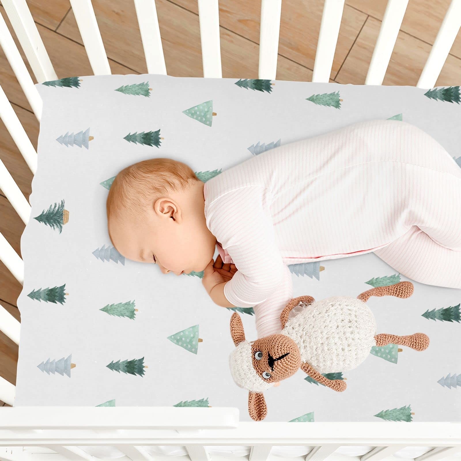 Christmas Tree Crib Sheet for Boys Girls, Fitted Crib Sheet 28 x 52 in for St...