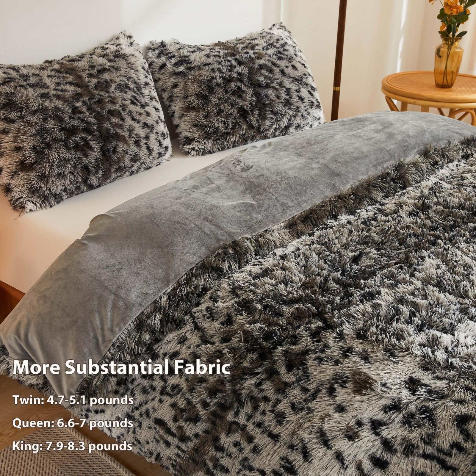 Cheetah Print Faux Fur Duvet Cover Fluffy Bedding Set, 3 Pieces Soft Plush Fu...