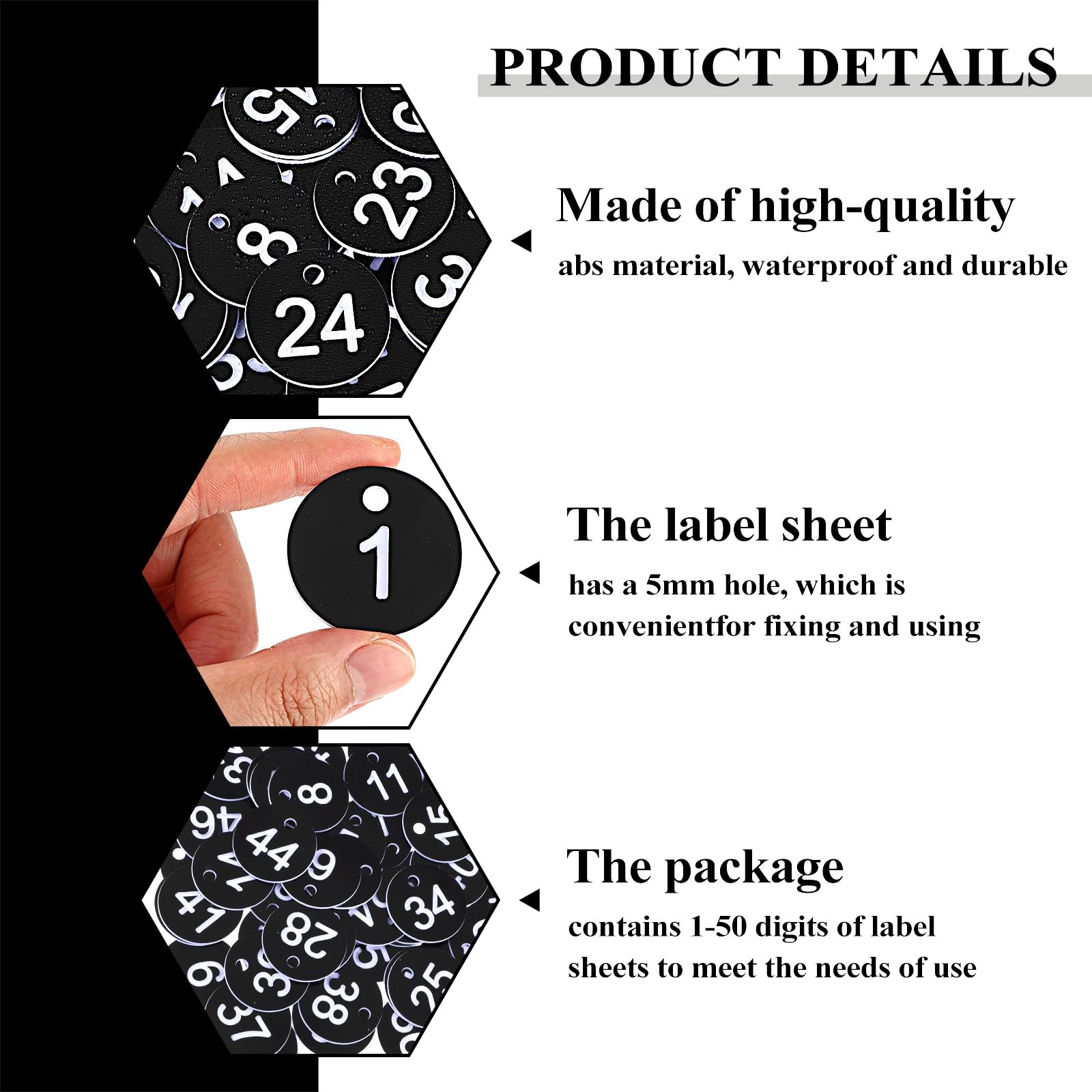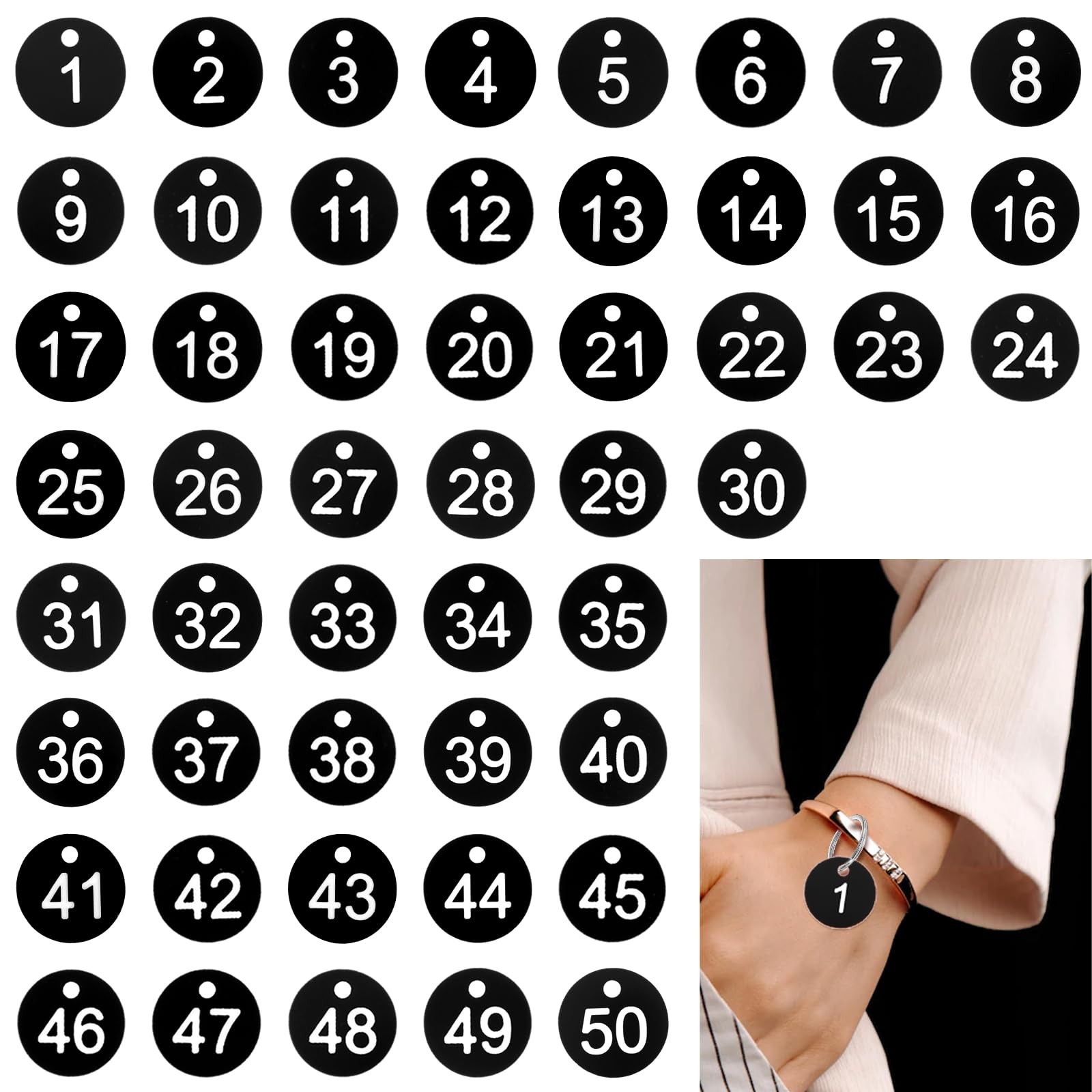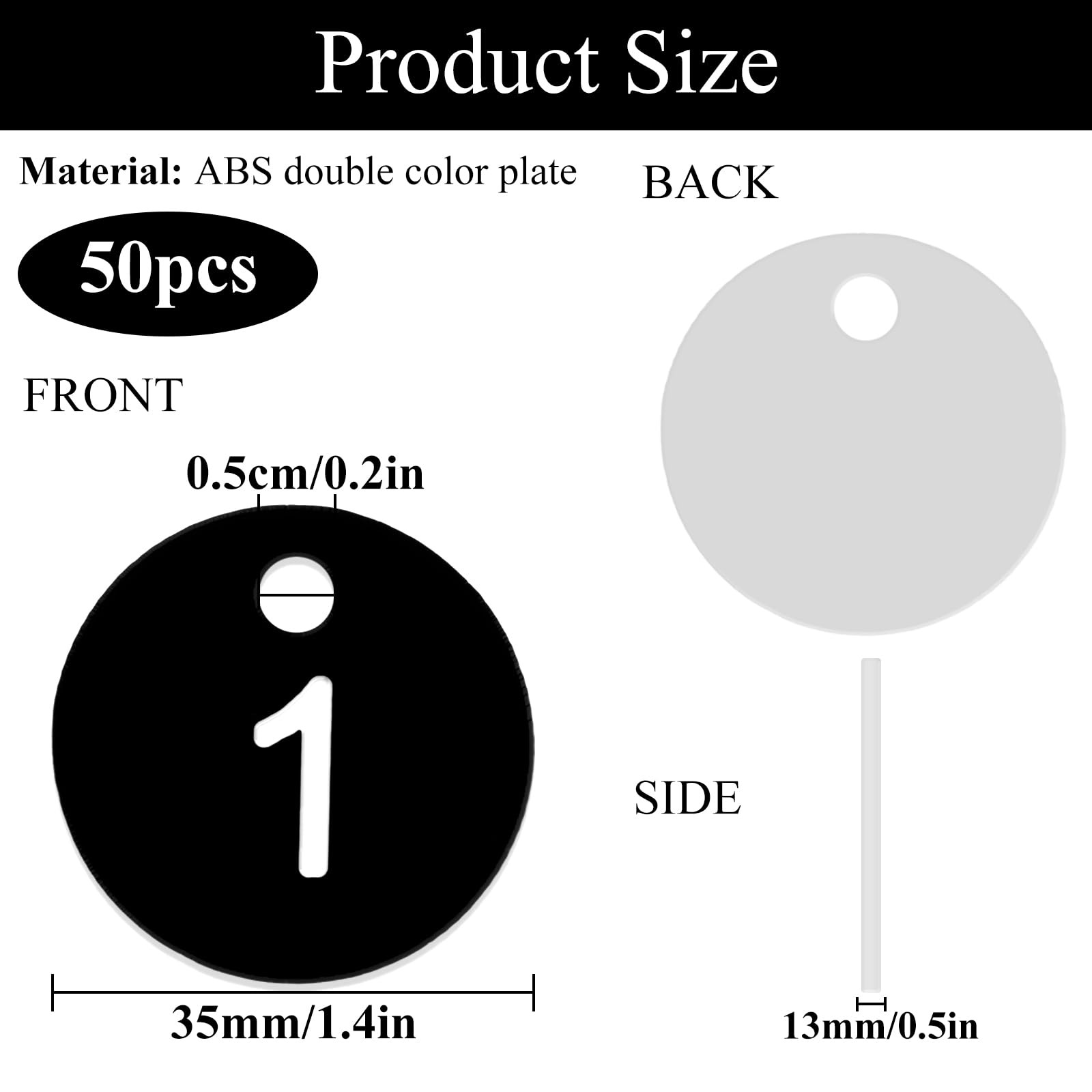 Jeffdad 1-50 Number Tags, Plastic ID Hang Tags 3.5cm x 0.5cm, Black