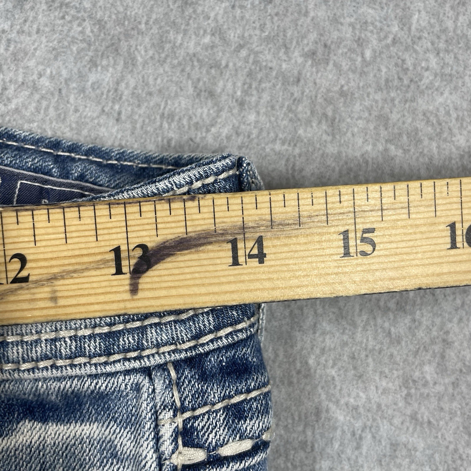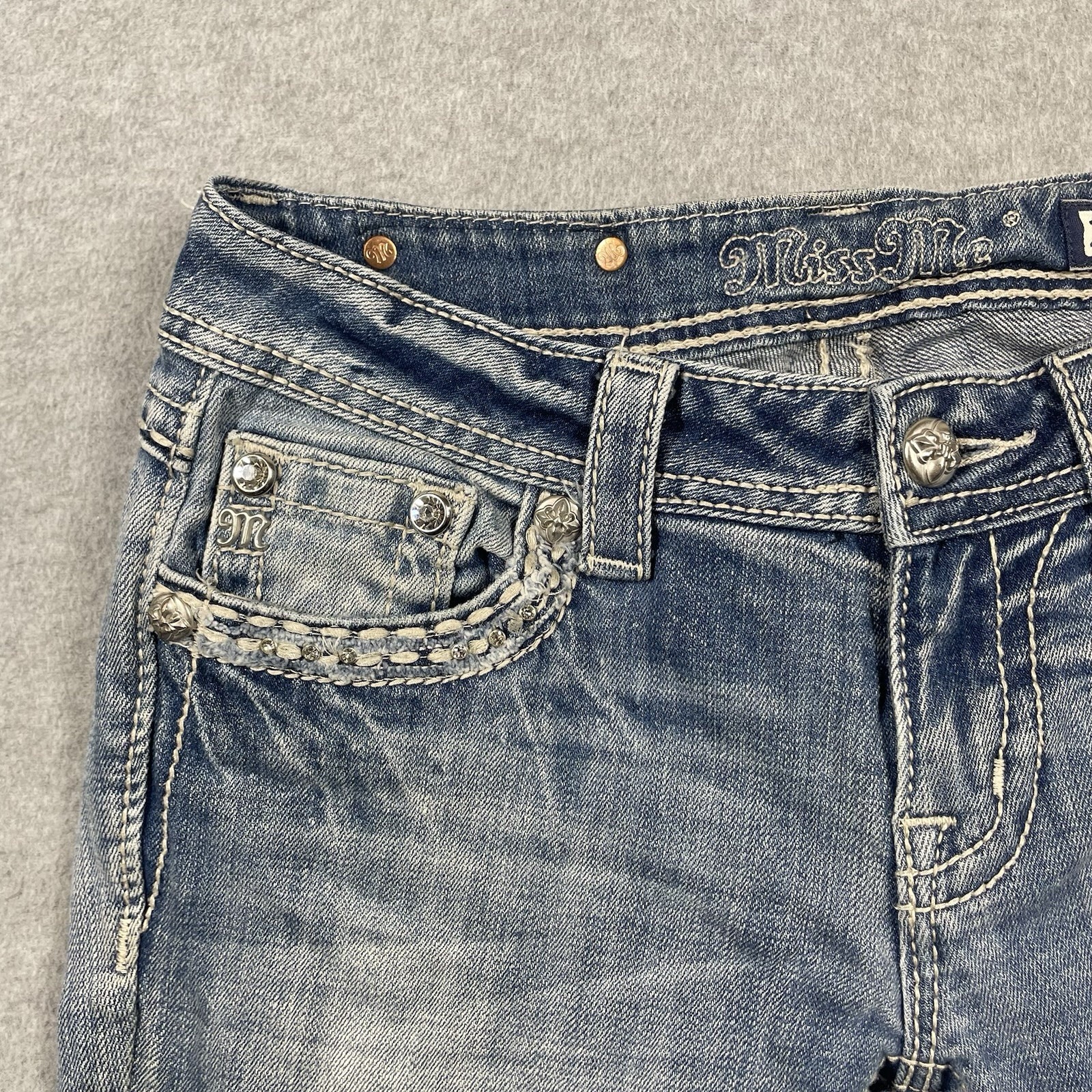 Miss Me slim boot jeans women's 27 W28 L32 medium wash rhinestone flap pockets