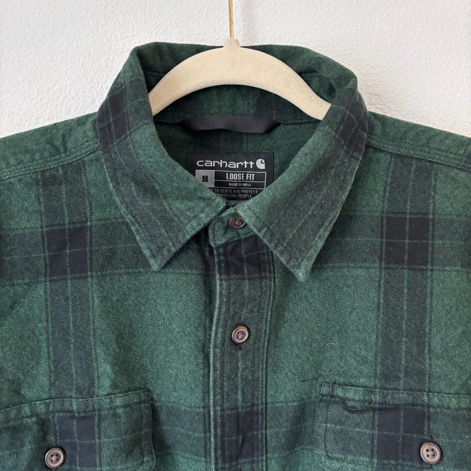 Carhartt Shirt Men's Medium Green Plaid Heavyweight Flannel Loose Fit TW4451-M