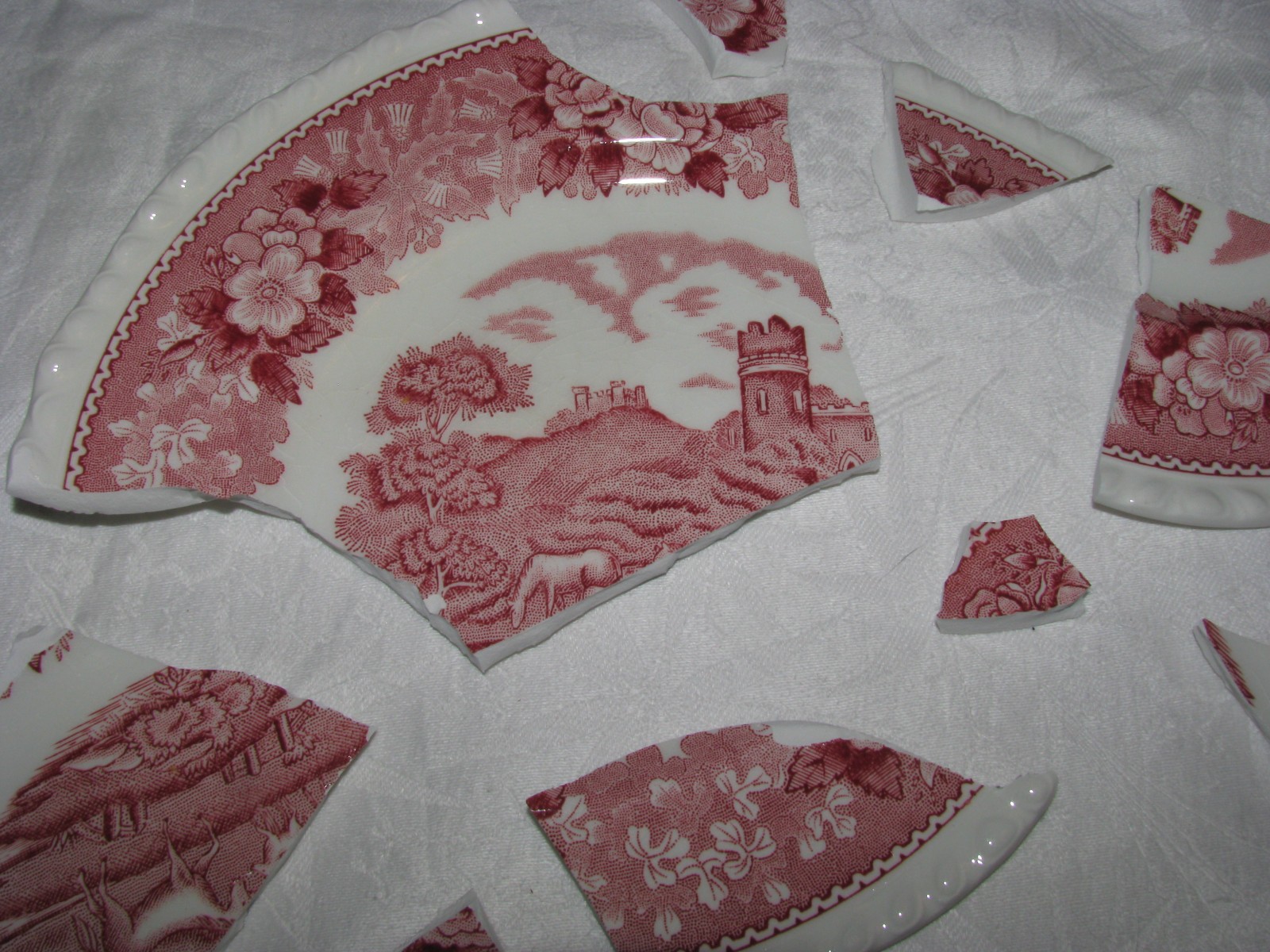 Red Transferware Broken Plate 16 Pieces For Crafts