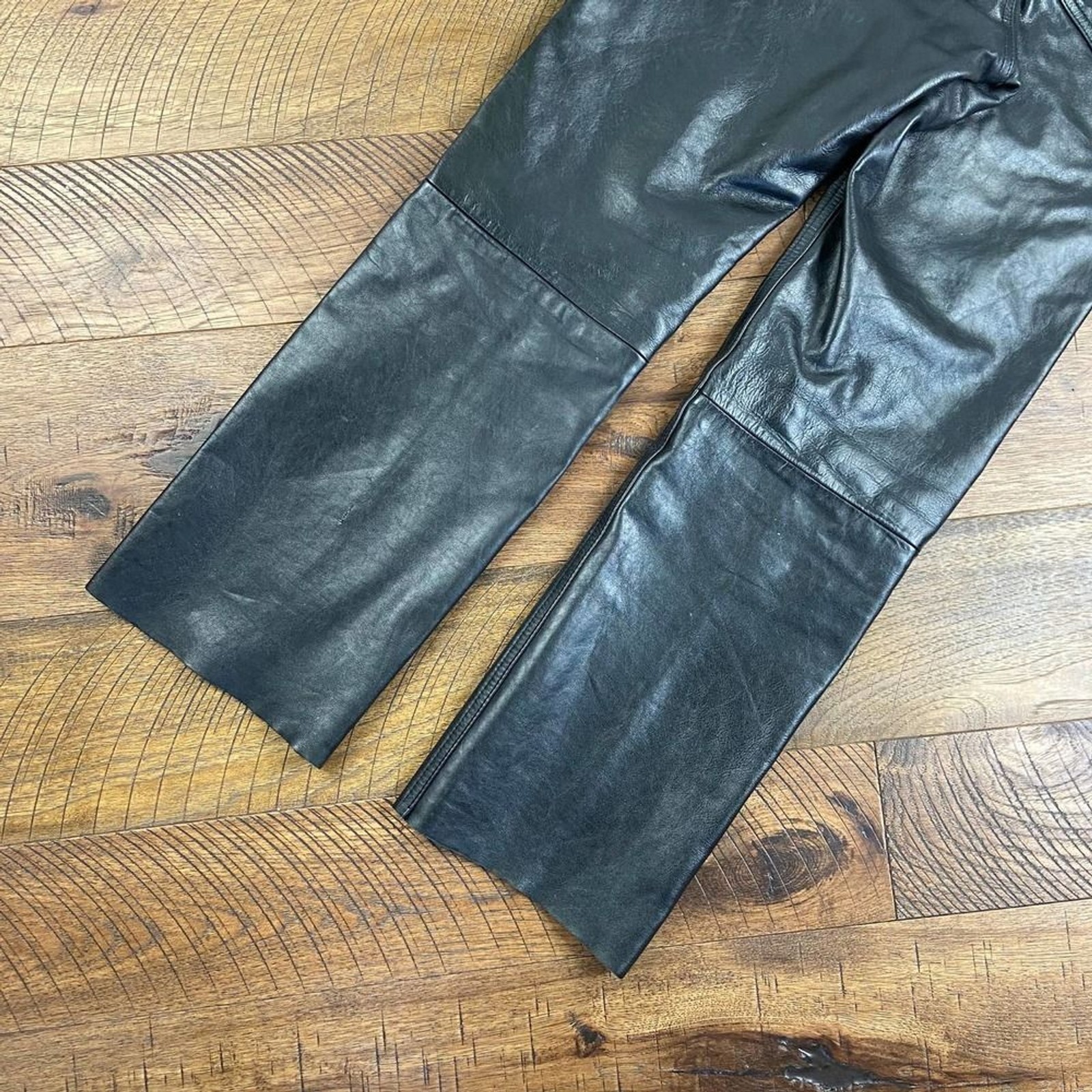 как выглядит WILSON 30 vintage 100 leather black pants high rise retro straight leg boot cut фото