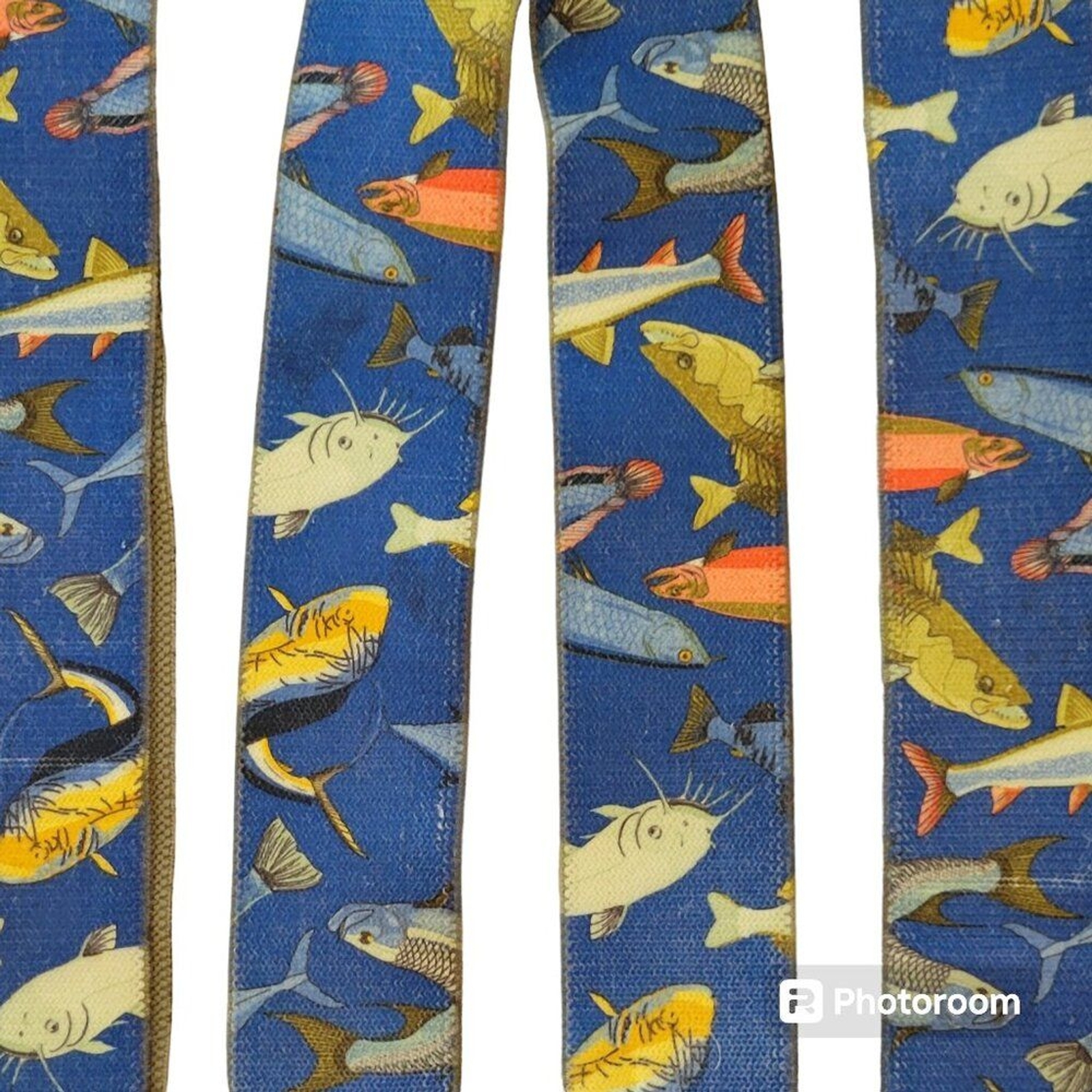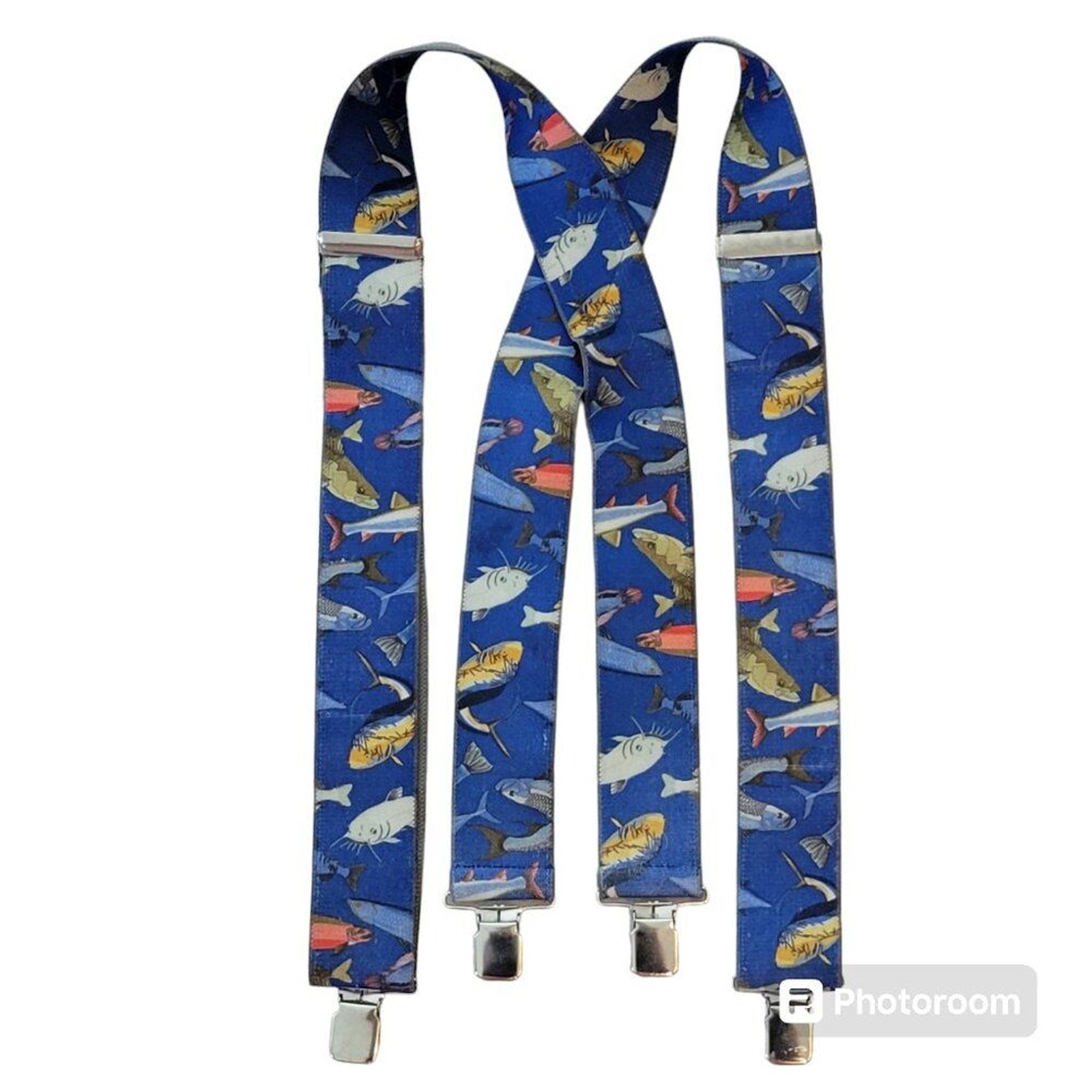 как выглядит Mens Heavy Duty Suspenders Braces All Over Fish Print Blue Background USA фото