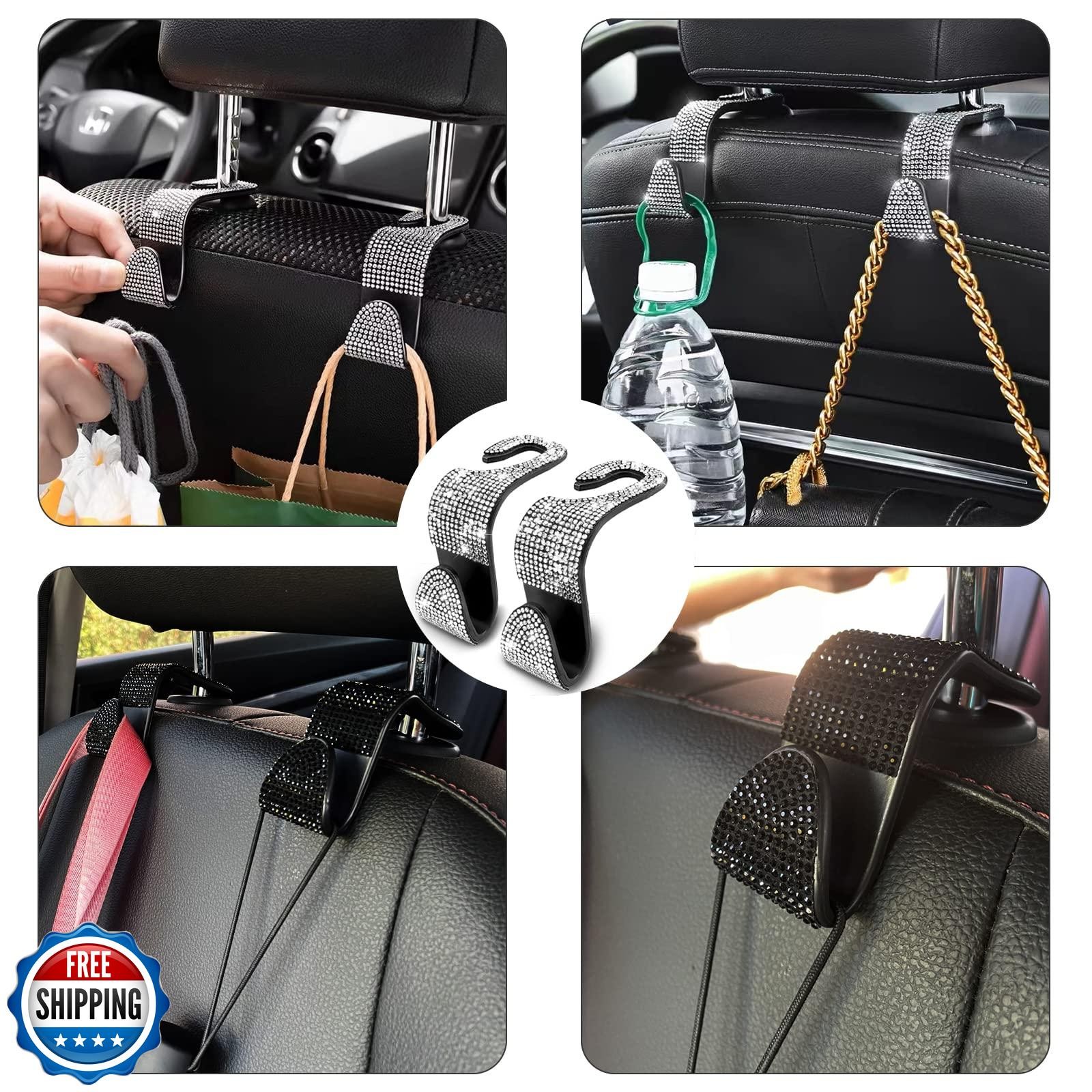 OSIFIT 2PCS Car Seat Hooks, Bling Rhinestone Headrest Hooks, Univ
