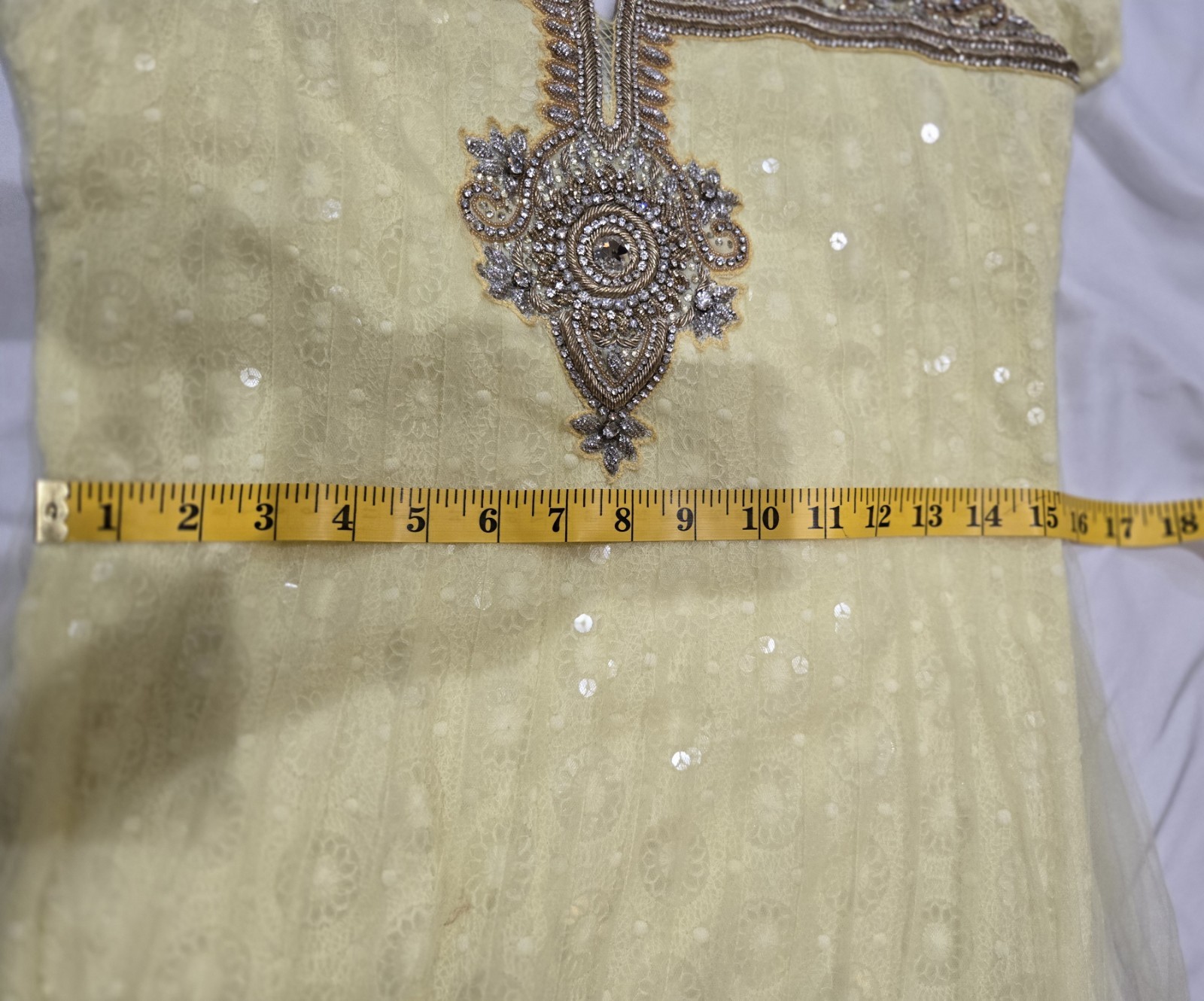 как выглядит Indian Anarkali Kurti Set Women Short Sleeves Handmade Beads Crystal Embroidery фото