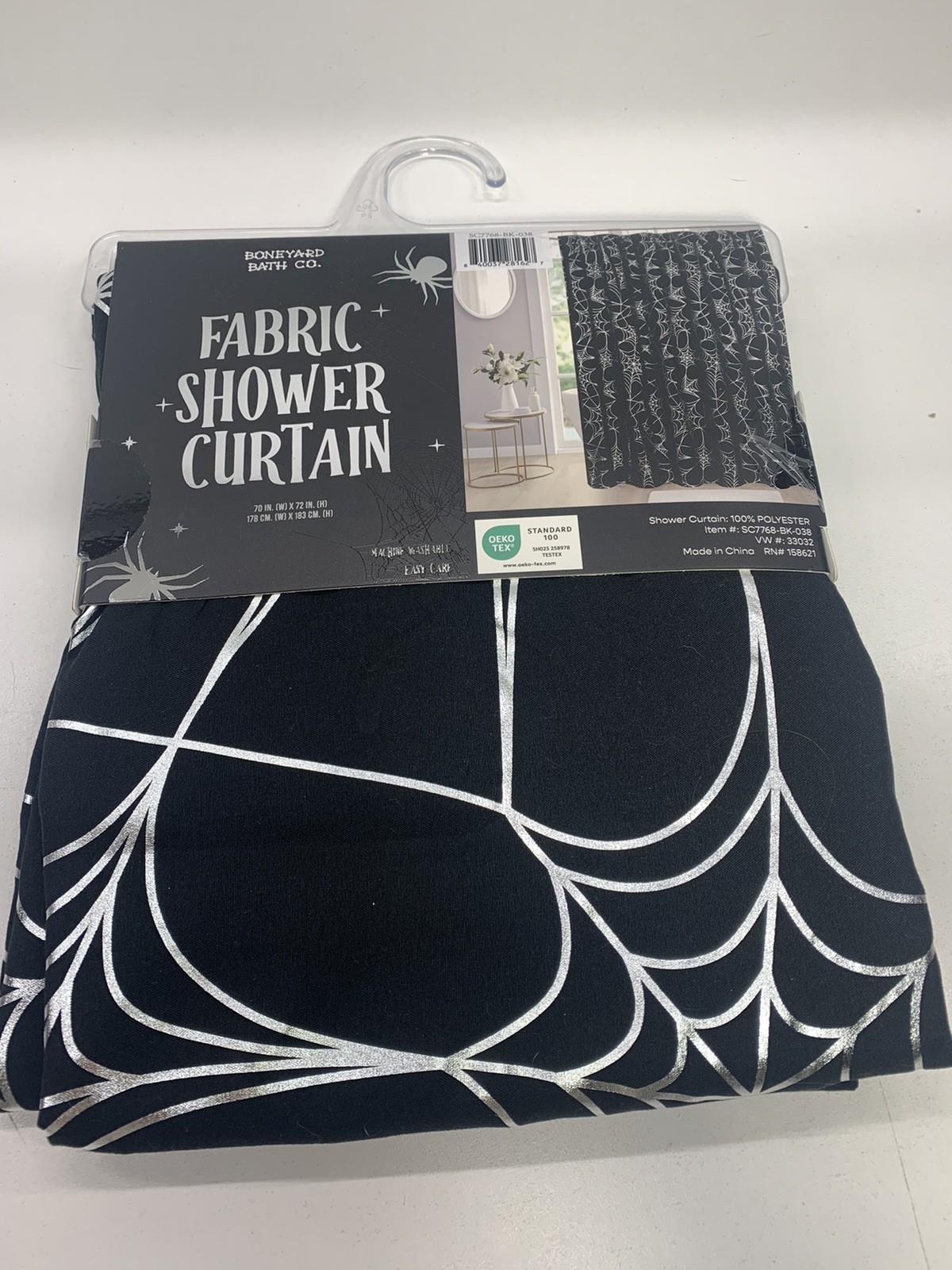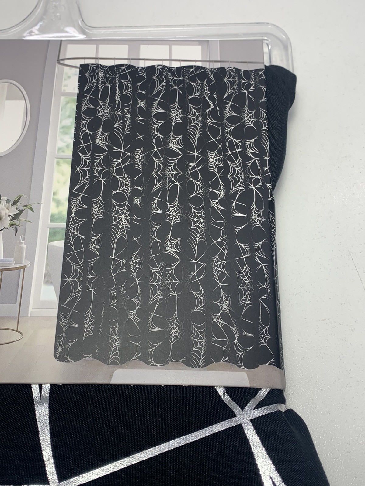 как выглядит Gothic Shower Curtain Decor Black and Silver Spider Web Spooky Fabric фото