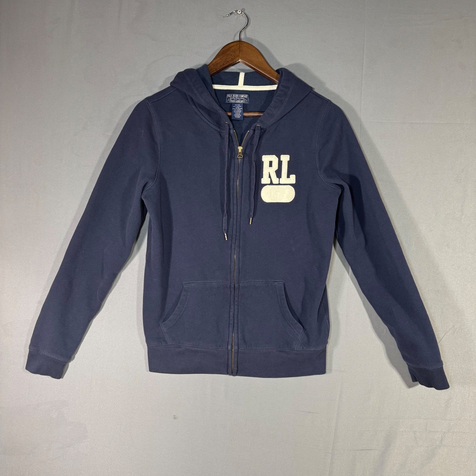 Vintage Y2K Polo Ralph Lauren RL 67 Zip Up Hoodie Sweatshirt M Navy Blue