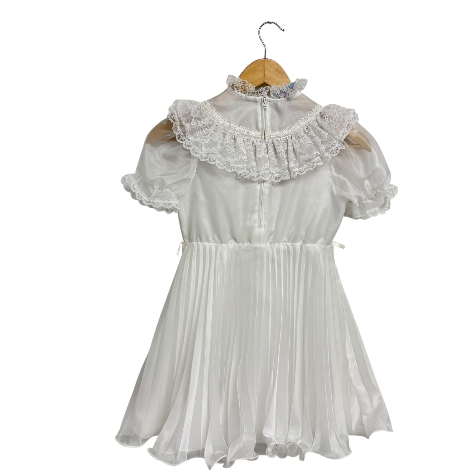 как выглядит Vintage Merry Girl White Party Dress Lace Ruffles Made in USA Girls 8 фото