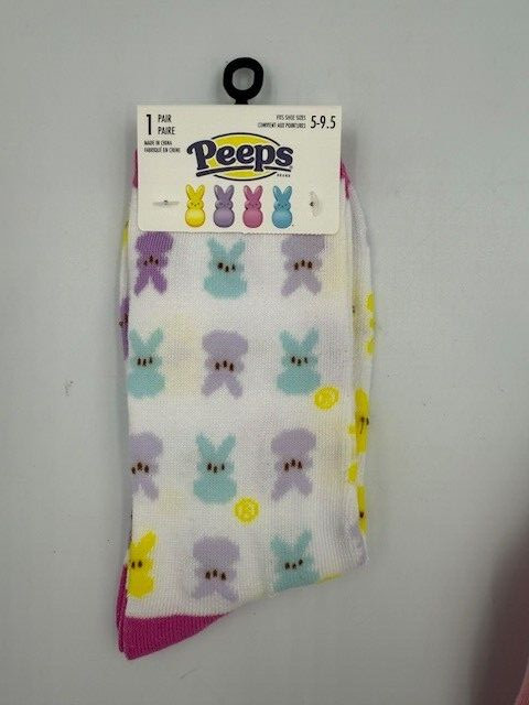Lot Of 3 Pair Peeps Novelty Crew Socks Women s Sz 5-9.5 Easter Bunny gift Pink