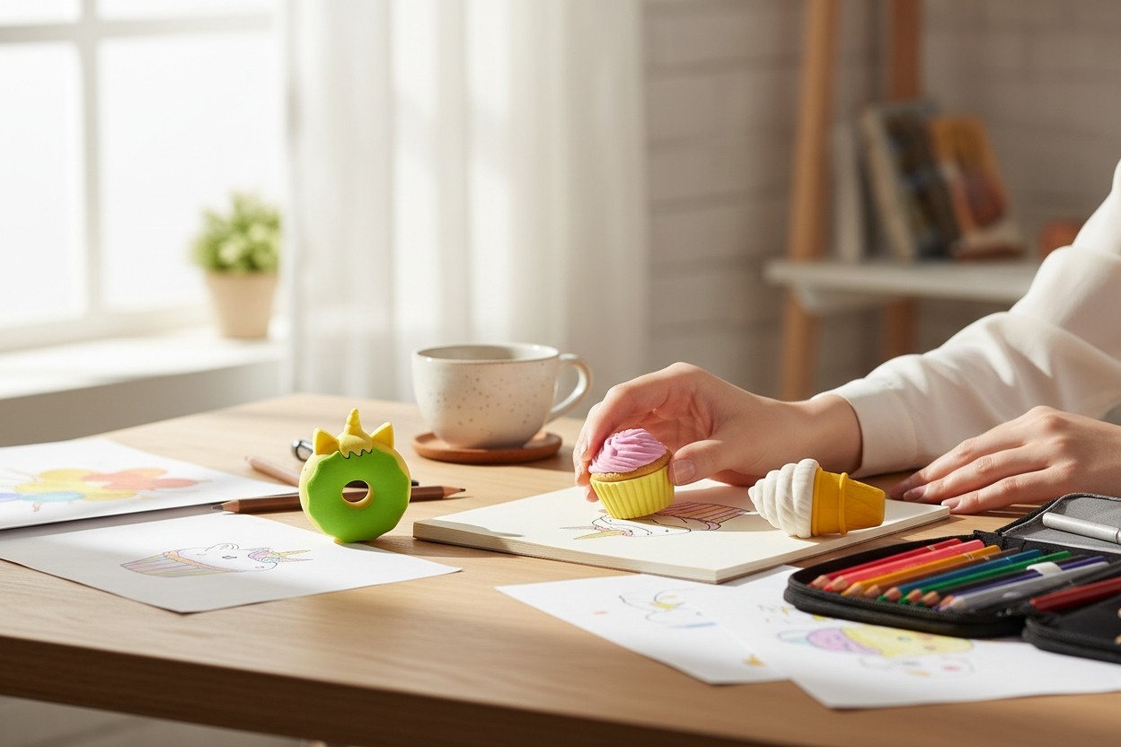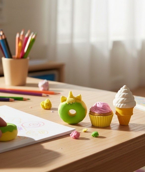 как выглядит Lot Of 3 Miniature 1" 3D Erasers DIY Puzzle Creative Brand Sweets Variety Pack фото