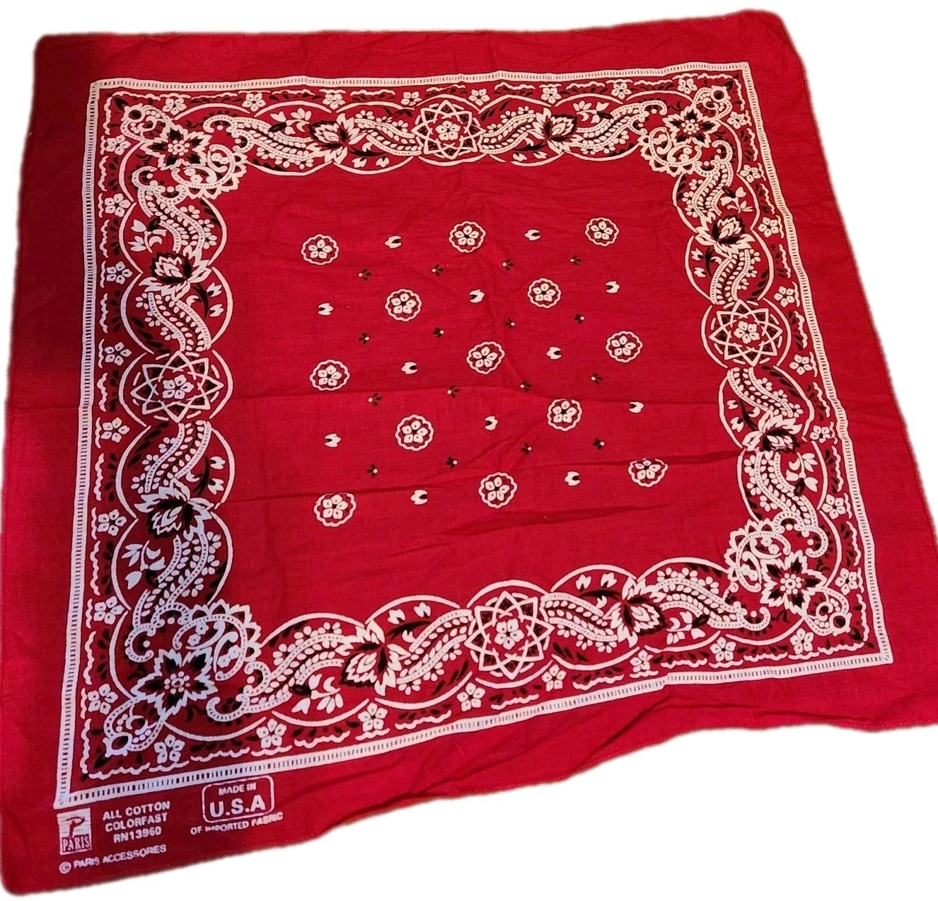 VTG Paris Accessories Red W/Black White Bandana Handkerchief Colorfast USA 13960