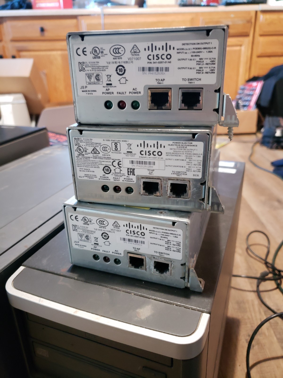 как выглядит Lot of 3 CISCO POE80U-560 G -C-R POE Power Over Ethernet Injectors фото