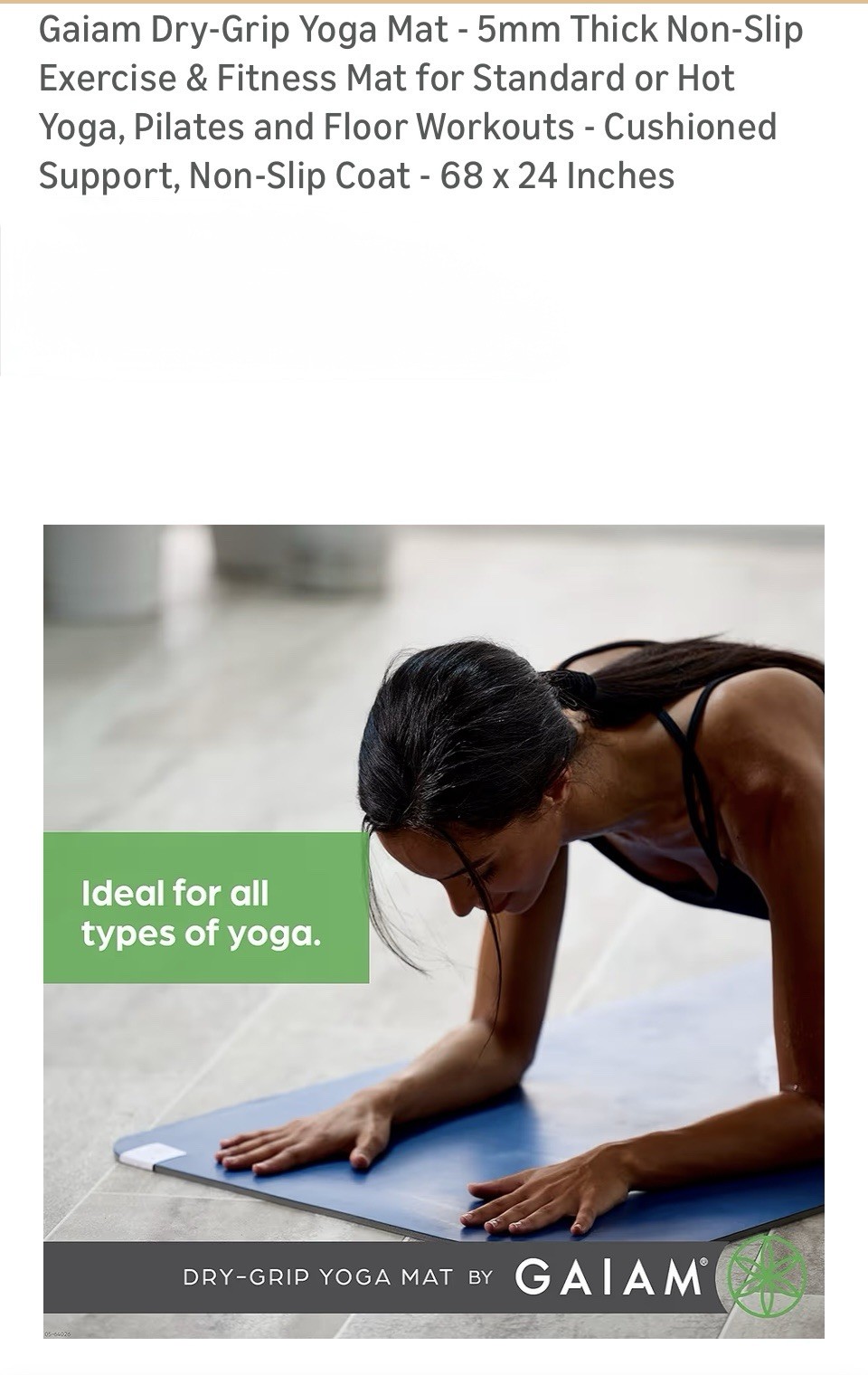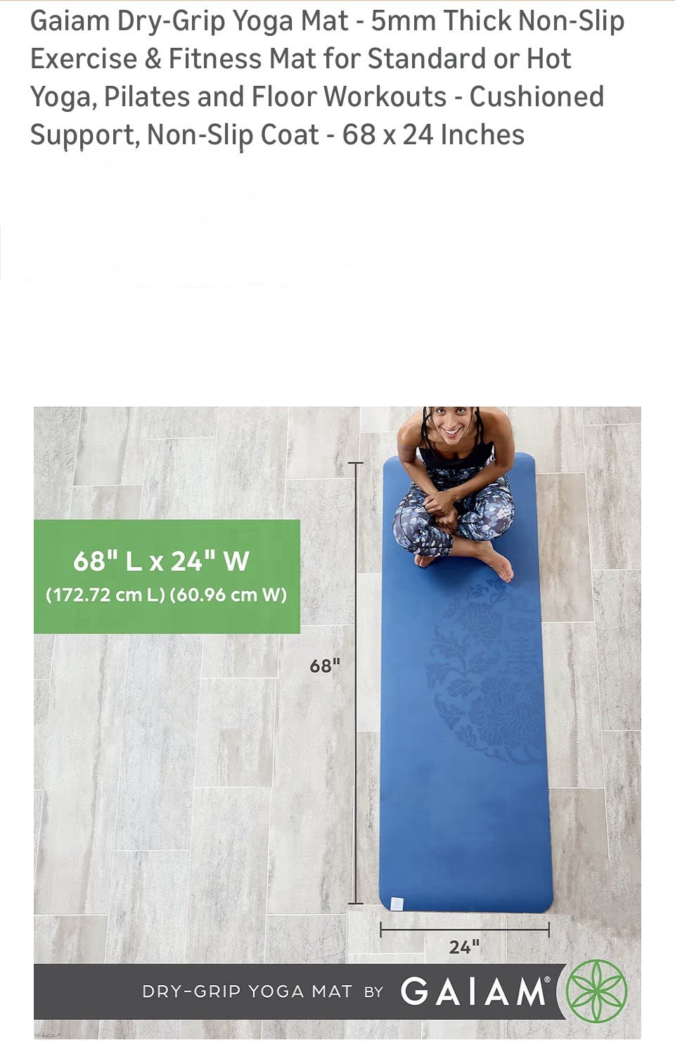 Gaiam Yoga Mat New Dry-Grip 68 X 24 Cushioned Non-Slip Coat Double Sided