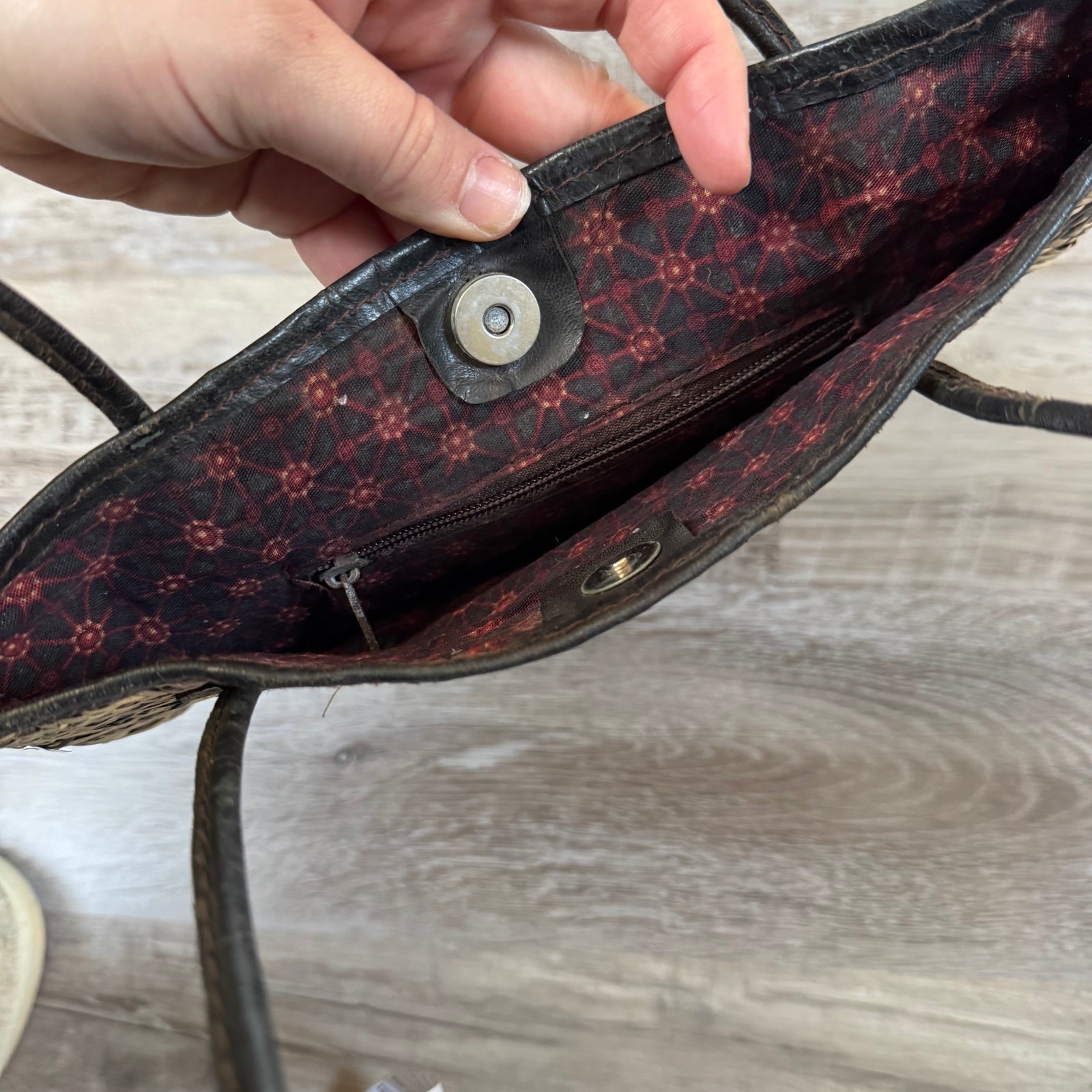 как выглядит Vintage Woven Straw Tote Bag Leather Straps Boho Coastal Summer фото