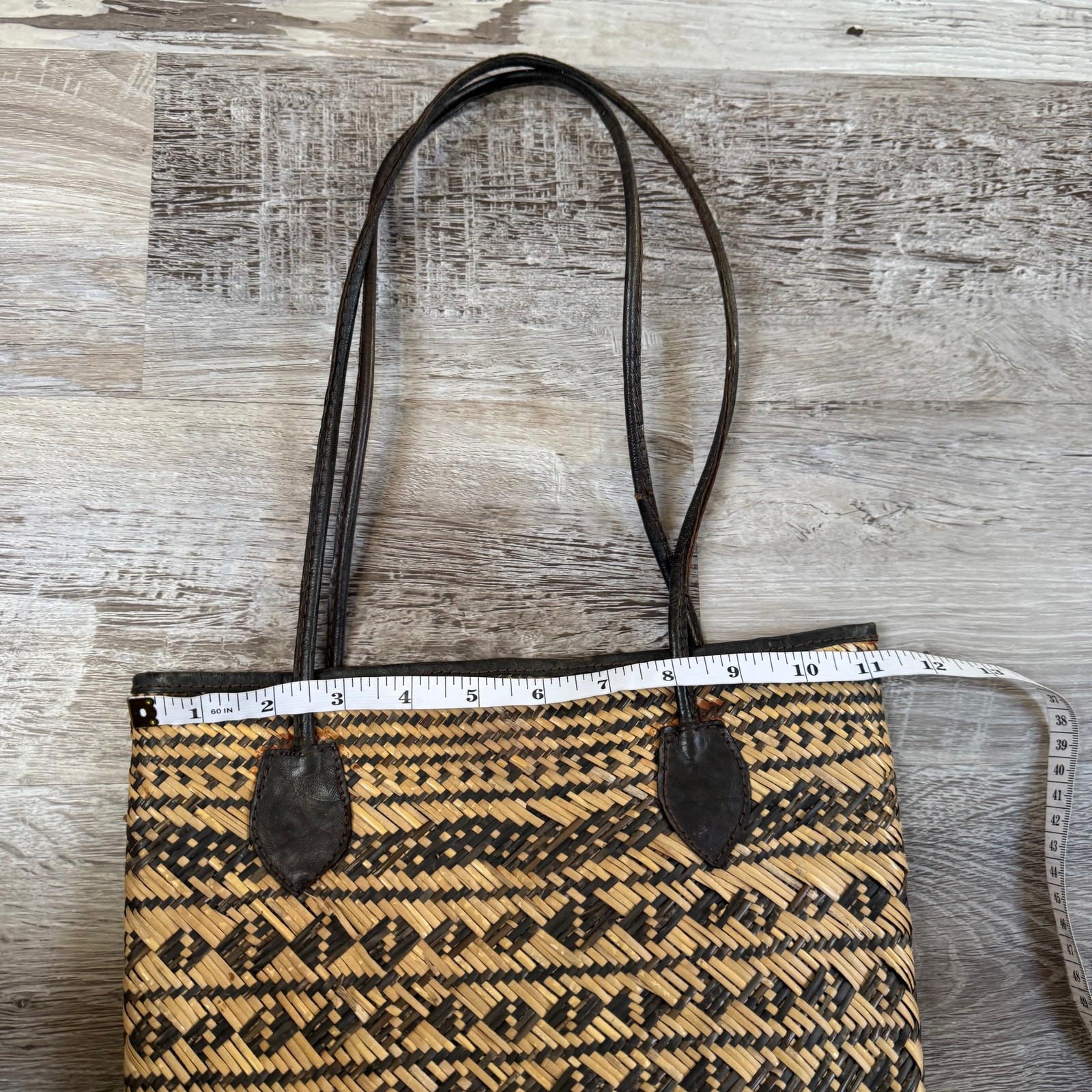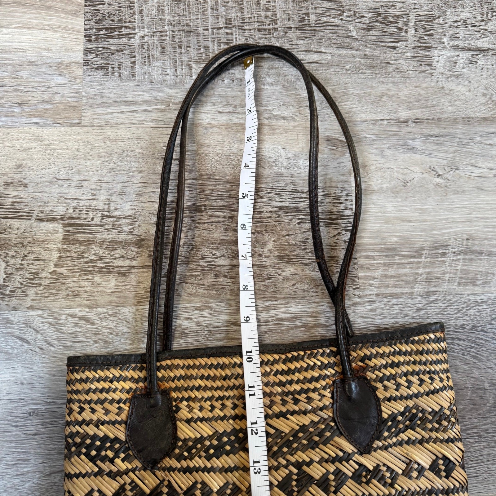 Vintage Woven Straw Tote Bag Leather Straps Boho Coastal Summer