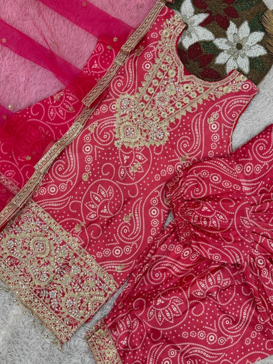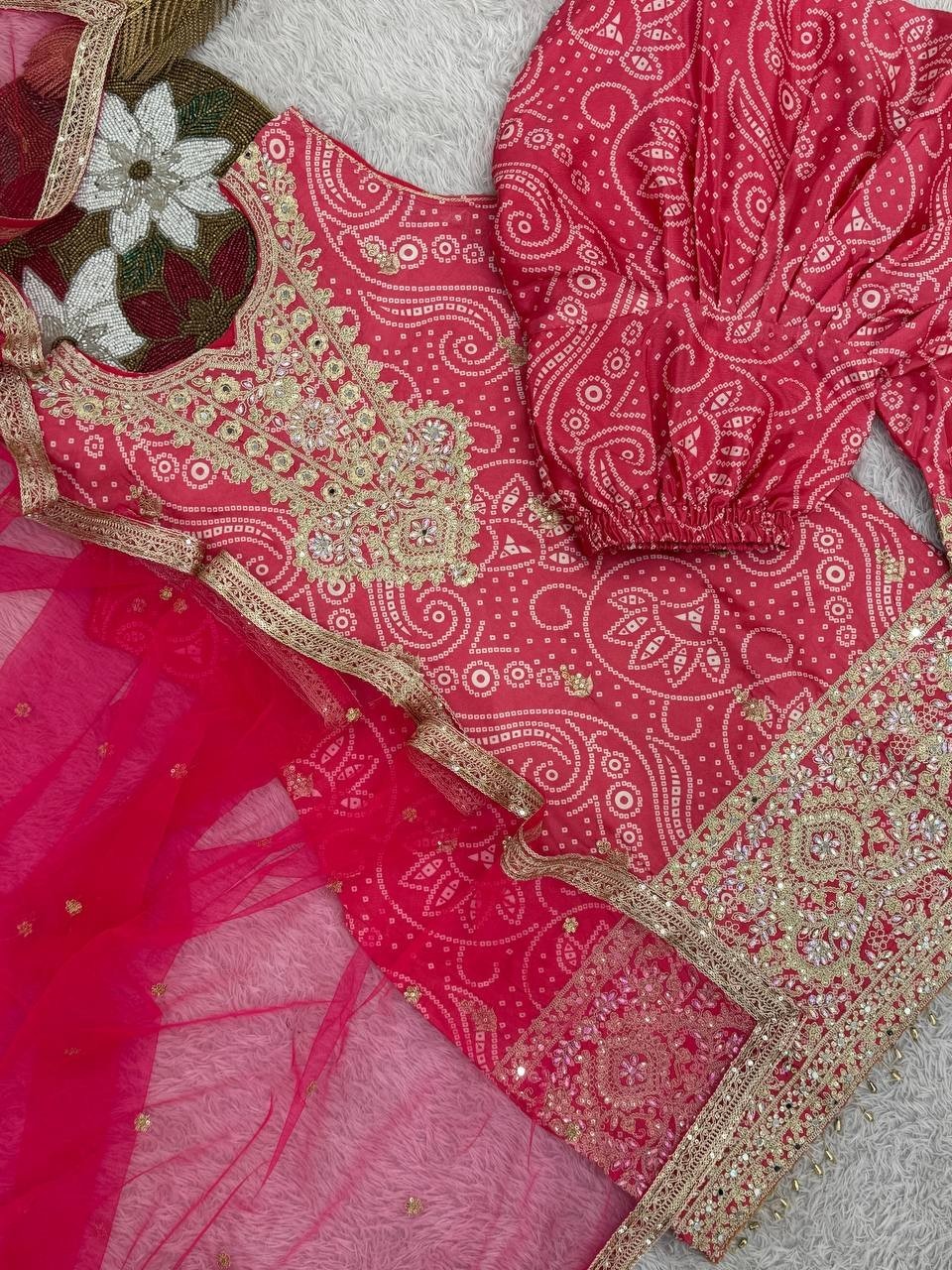 New Latest Pure Chinon Silk Pink Top Dhoti With Dupatta For Festival Wear