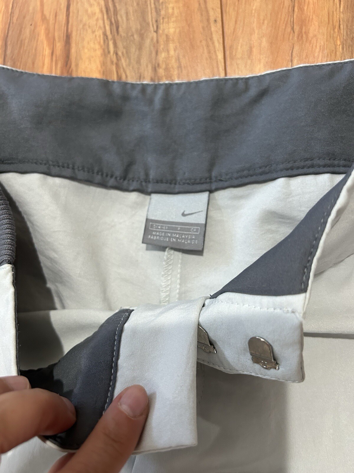 как выглядит Women Nike gray relaxed wide polyester light-weight pants sz 4-6 windbreaker фото