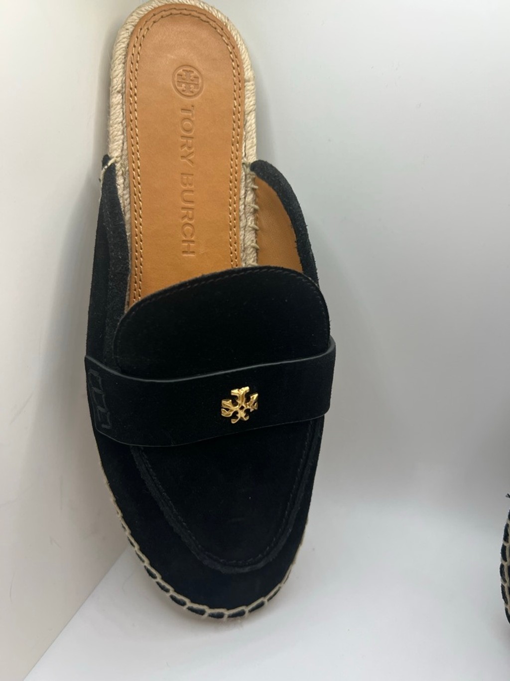 как выглядит Womens Tory Burch Black Suede Seaside Espadrille Mules 8 Read Description фото
