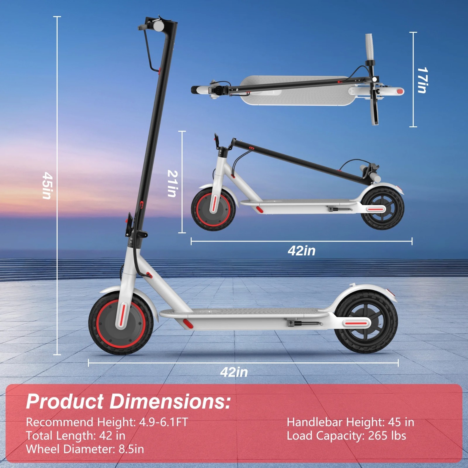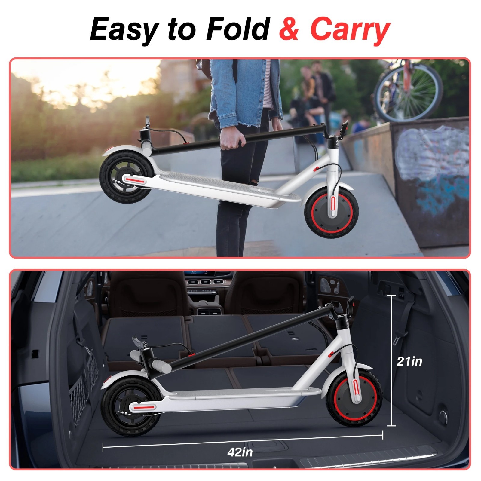 AOVOPRO White 350W 8.5' Foldable Electric Scooter for Adults Teens 21Miles