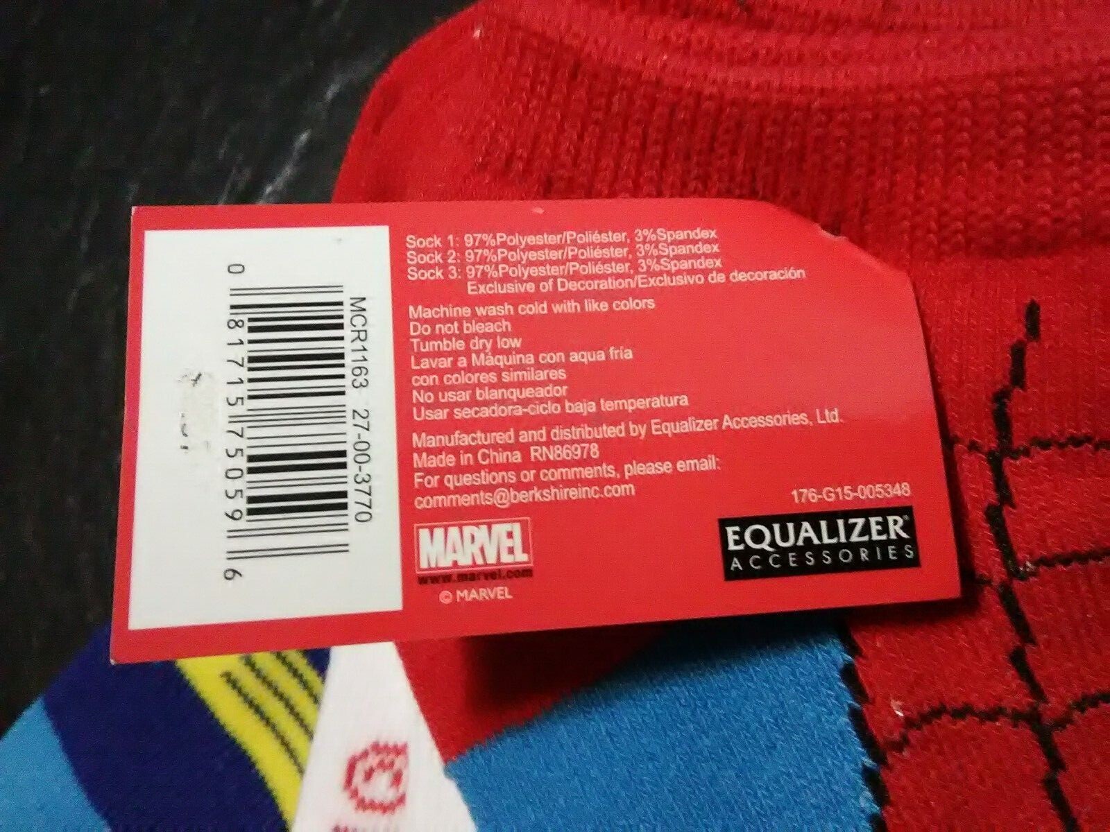 как выглядит Marvel Spider-Man, Falcon, Thor Avengers 3 Pair Low Rise Socks 9-11 / 4-10 NWT. фото