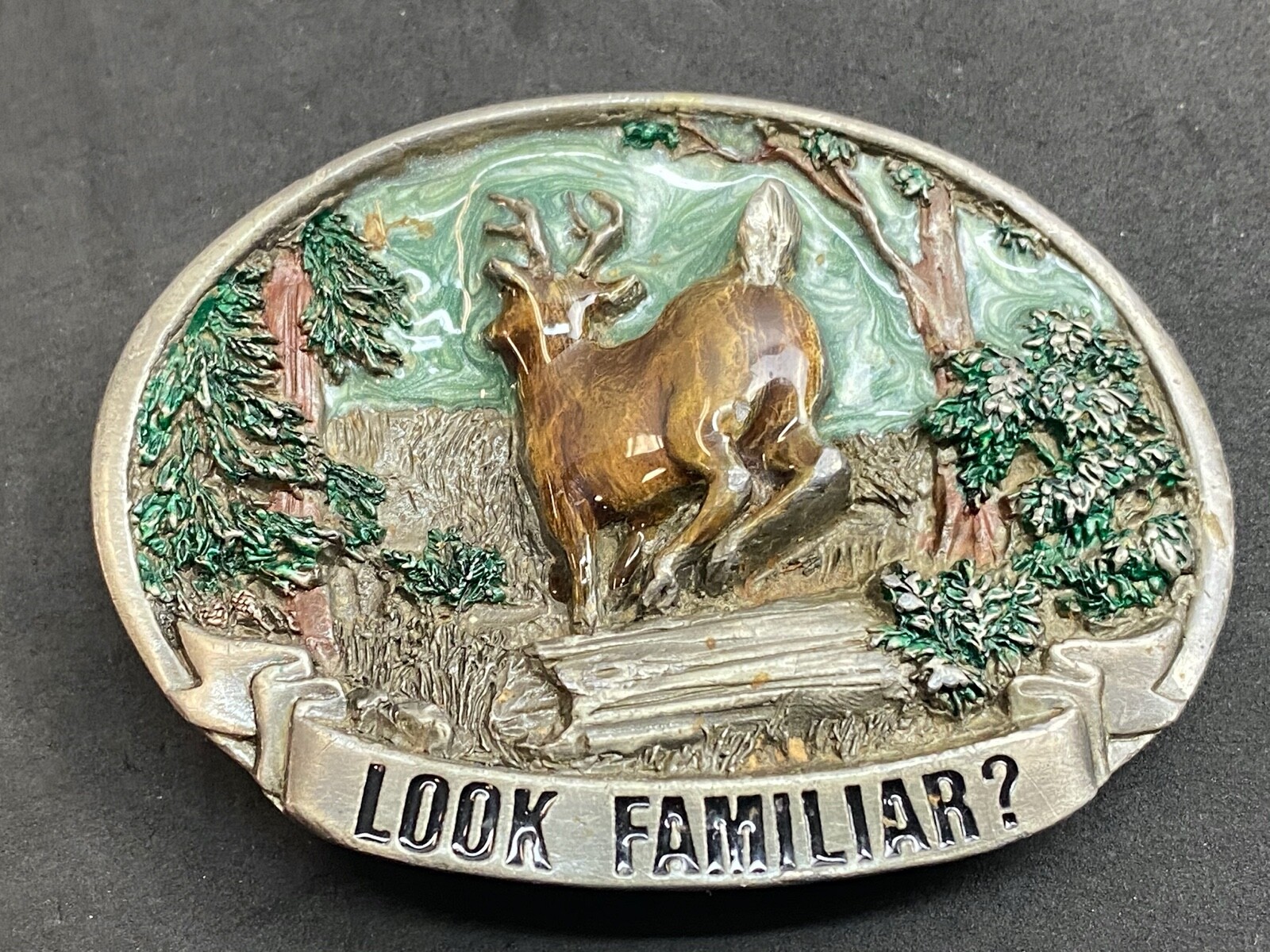 LOOK FAMILIAR Deer running away C.J. Belt Buckle got away - hunter's gift