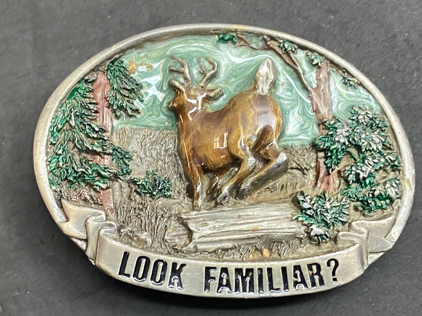как выглядит LOOK FAMILIAR Deer running away C.J. Belt Buckle got away - hunter