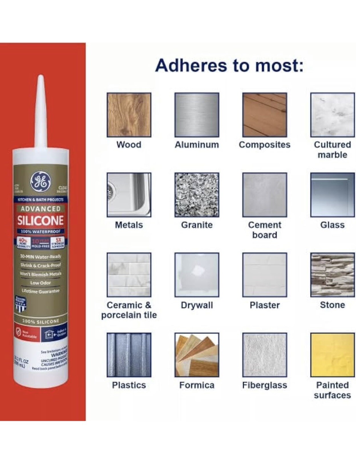 GE Advanced Silicone Caulk for Kitchen Bathroom - 100 Waterproof Silicone Sea