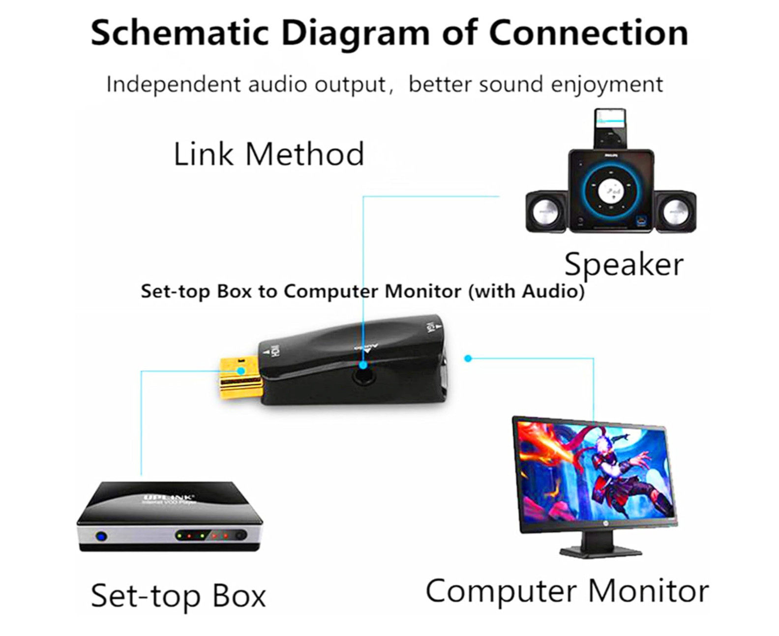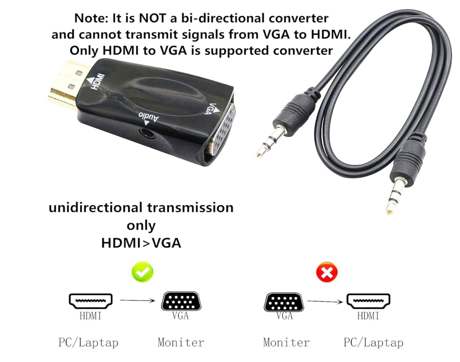 HDMI to VGA Adapter 1080p Converter HDTV for Beamer PC Laptop 3,5mm Audio Cable