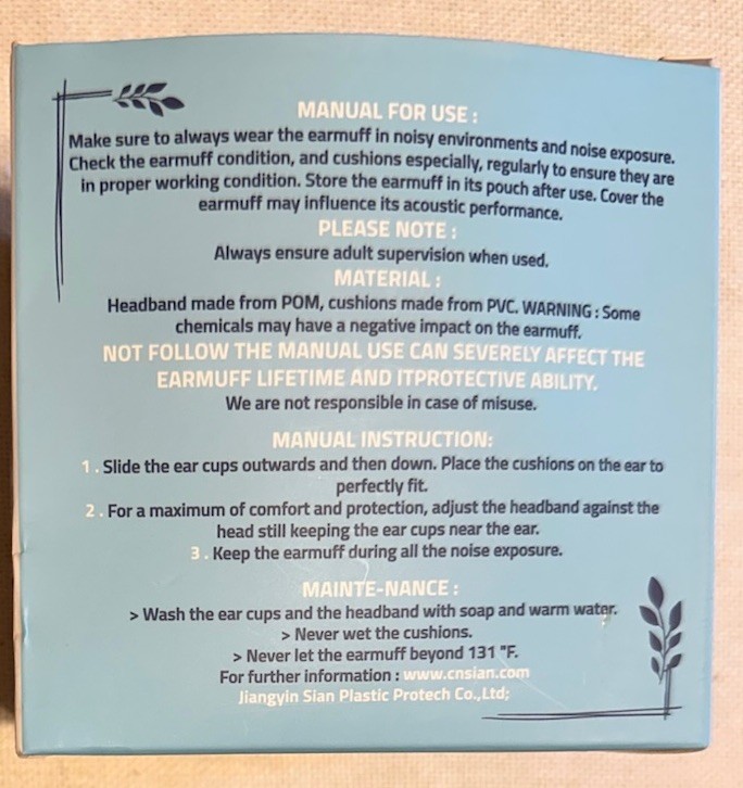 Тип: Ear Muffs/NoiseCancelling Headphones