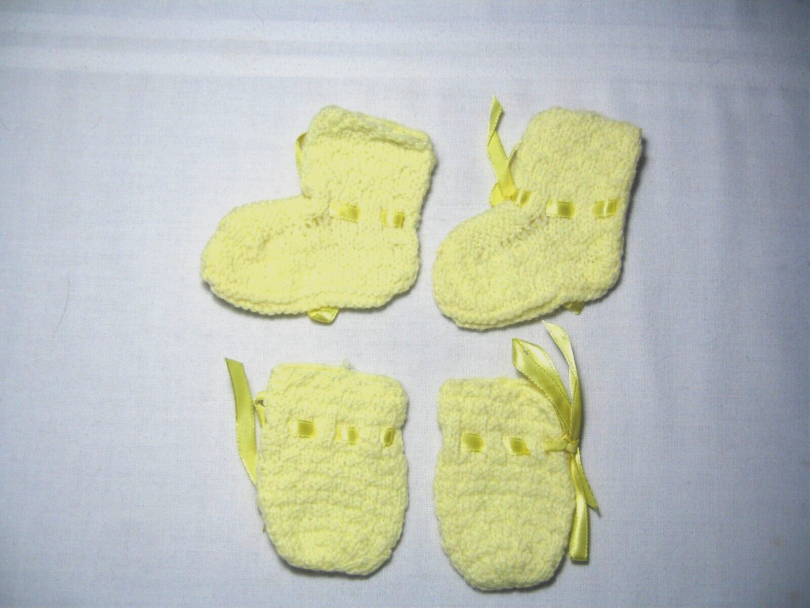 Handmade Crochet/Knit Yellow Baby Booties and Mittens New