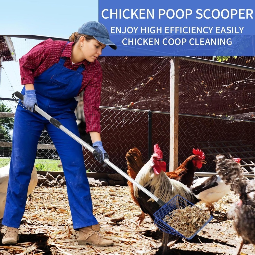 Extendable Metal Chicken Litter Scoop 23 to 42 Inch Long Poop Scooper Sifting
