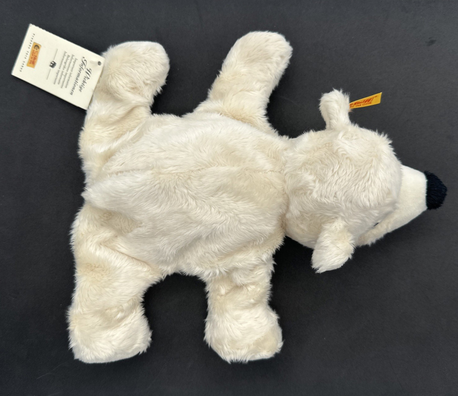 как выглядит Vintage Steiff Eisbar 24 White Polar Bear Lying Plush With Tags 081842 10" фото