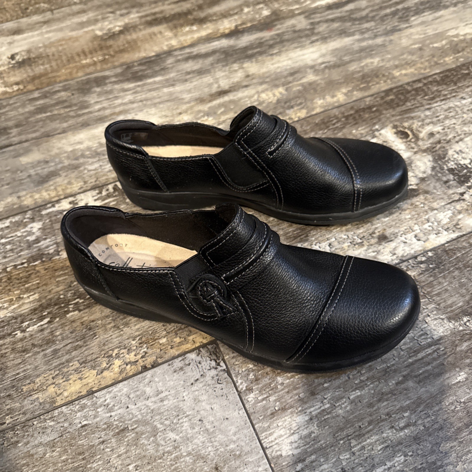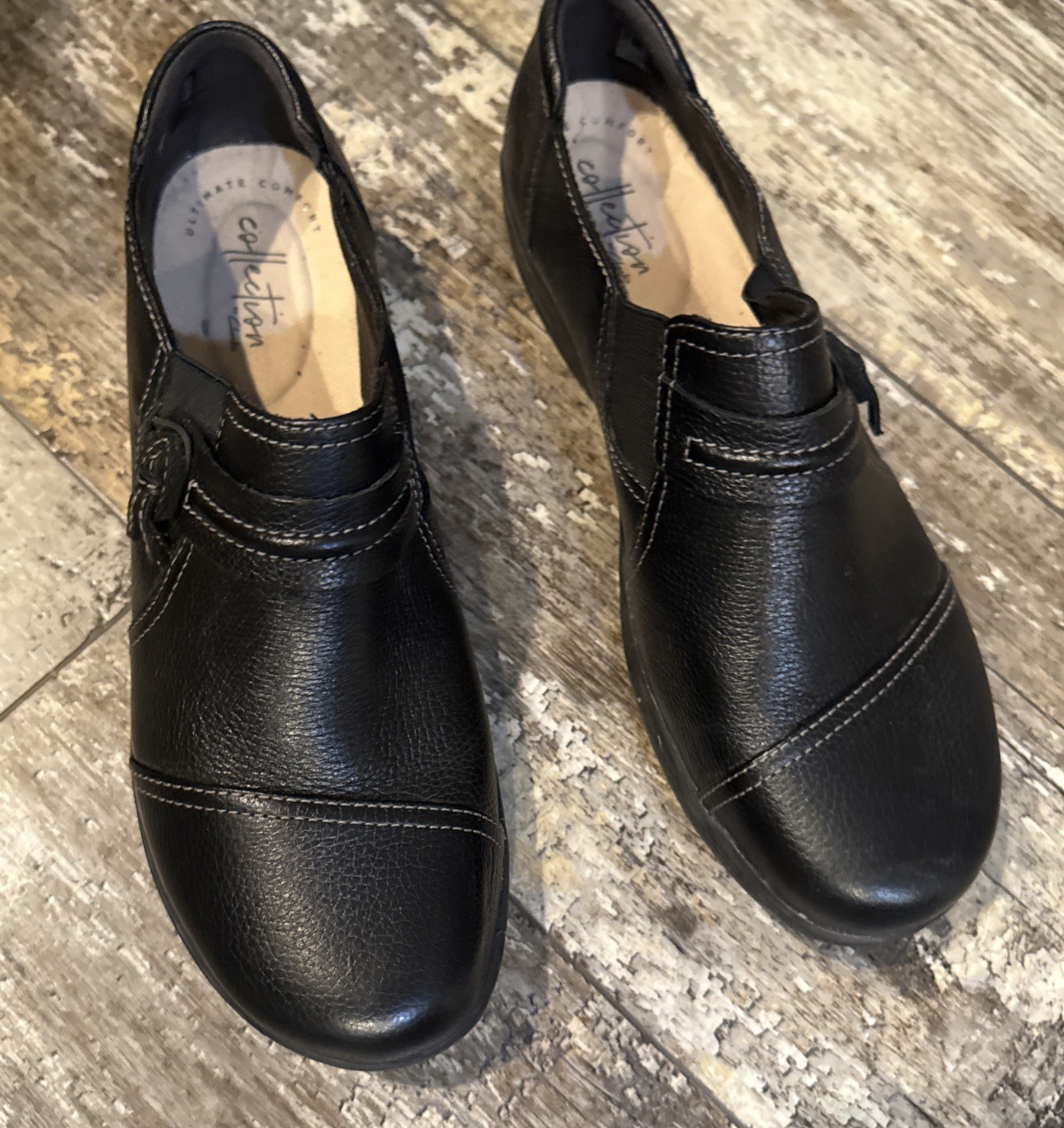 Clarks Women's Cheyn Madi Loafer Size 8 .5 M Black Leather Shootie Slip On Shoe