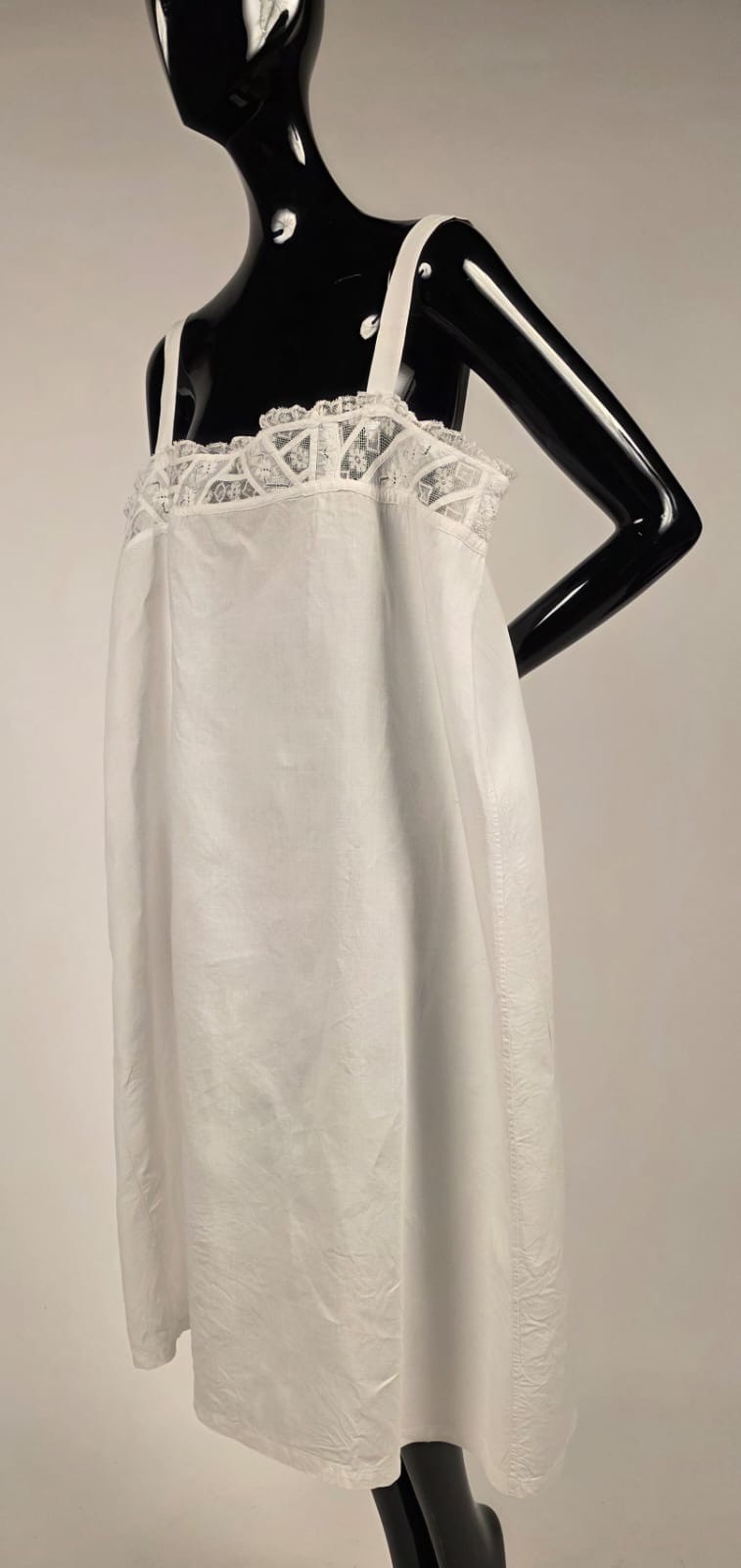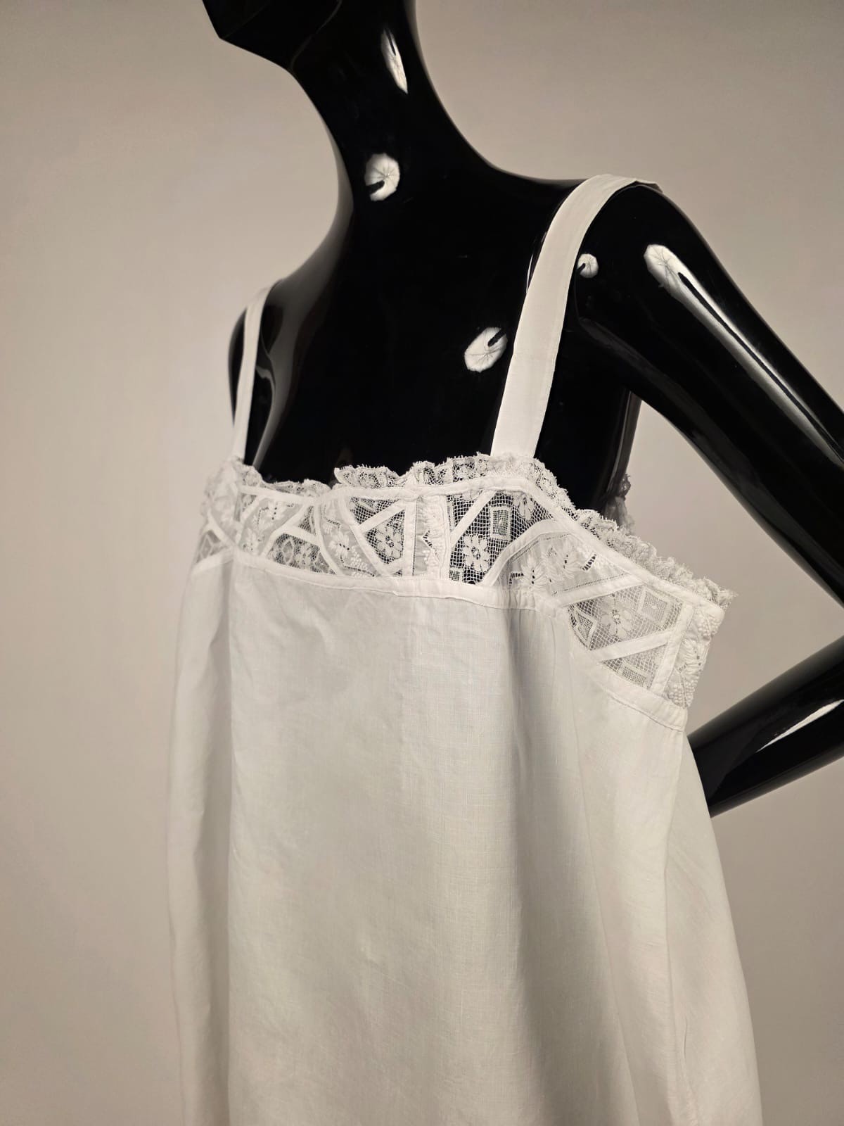ANTIQUE EDWARDIAN WHITE LINEN SLIP DRESS W EMBROIDERY LACE INSERTION