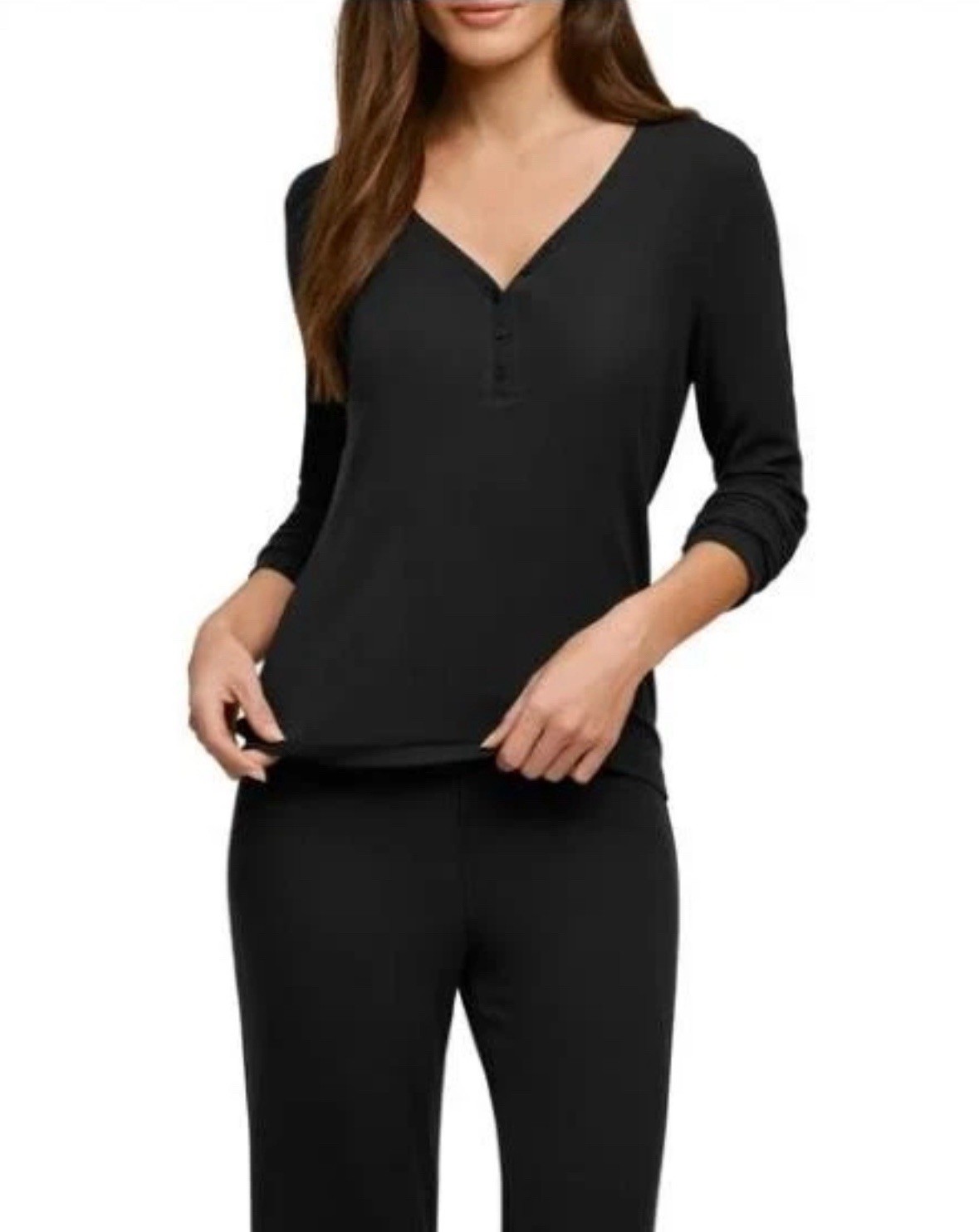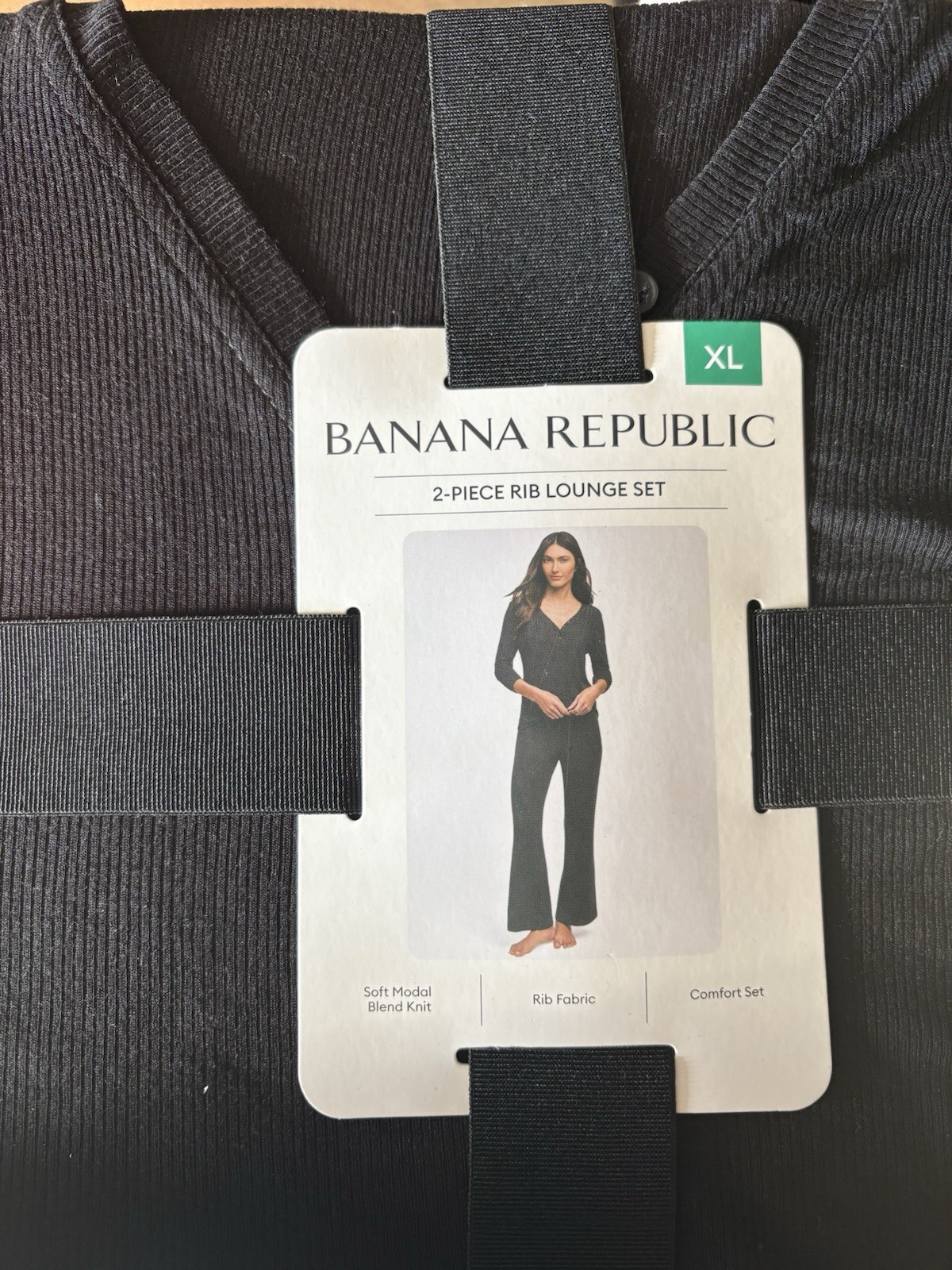как выглядит Banana Republic Womens Lounge Set Black 2-PC Rib Knit Lightweight XL фото