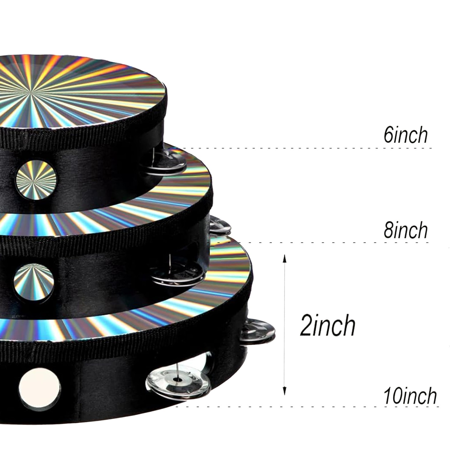 3 Pack Radiant Tambourine Hand Held Drum 6/8/10 Inch Double Row Jingles Refle