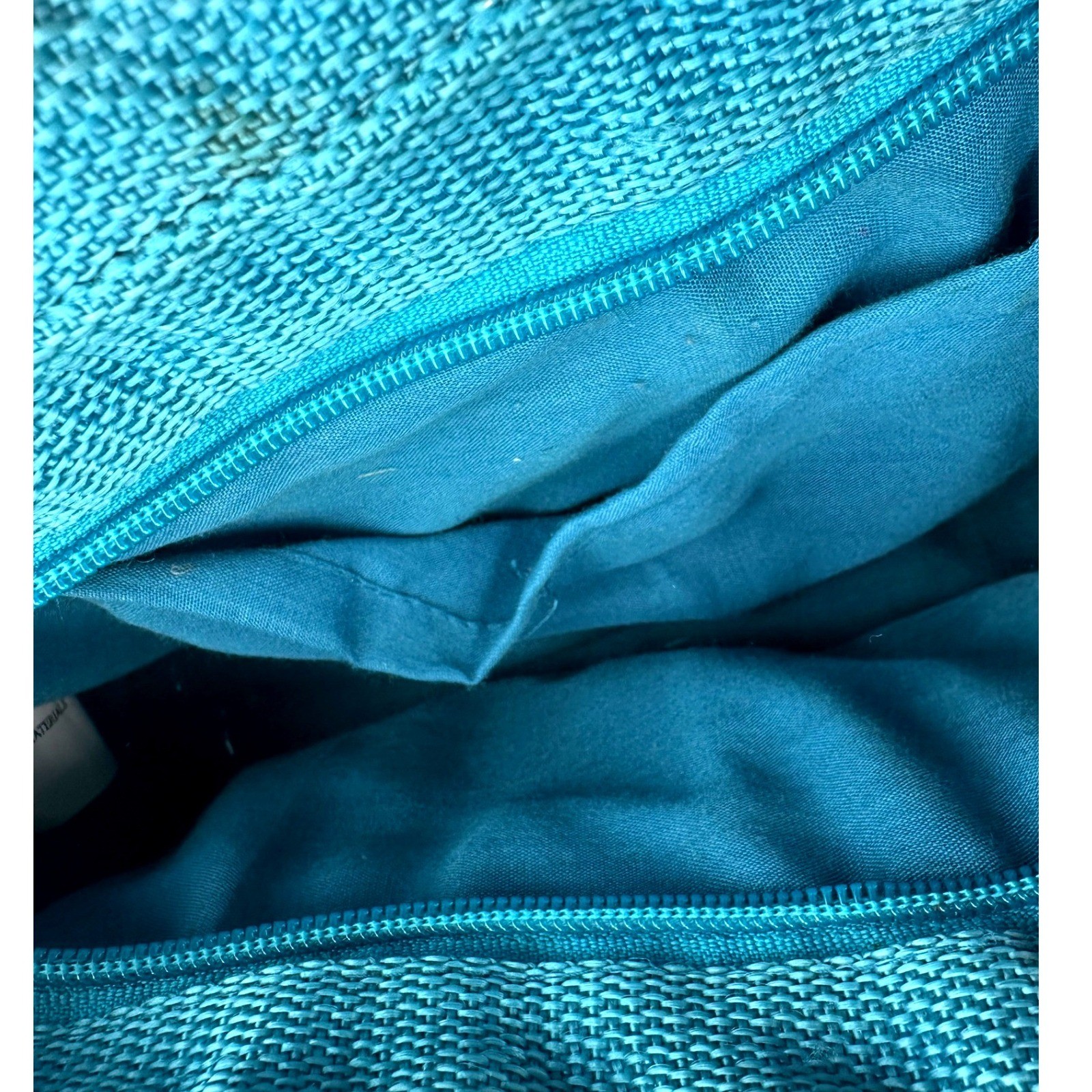 как выглядит Vintage Teal Woven Straw Handbag Wood Handles Beaded Boho Purse фото